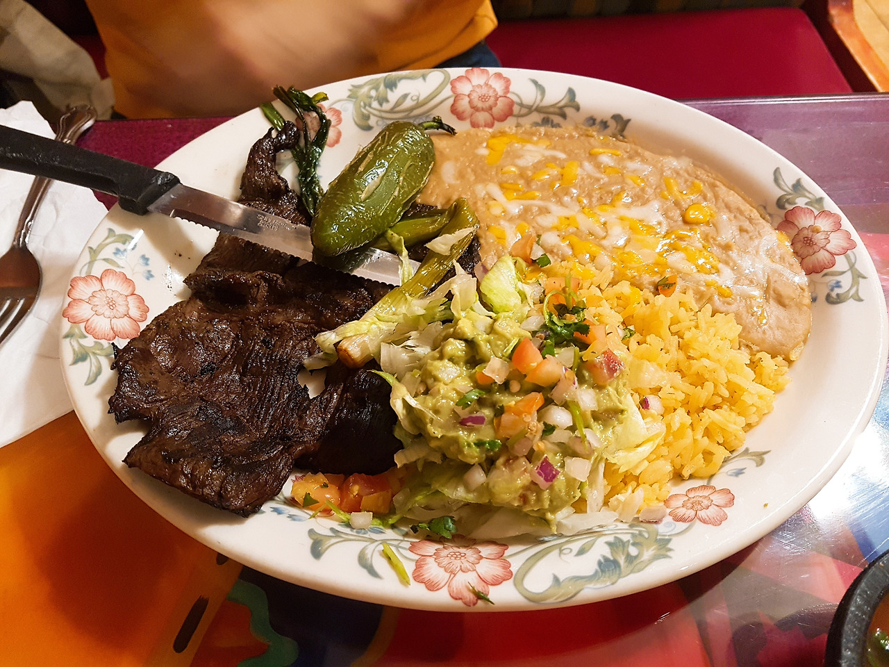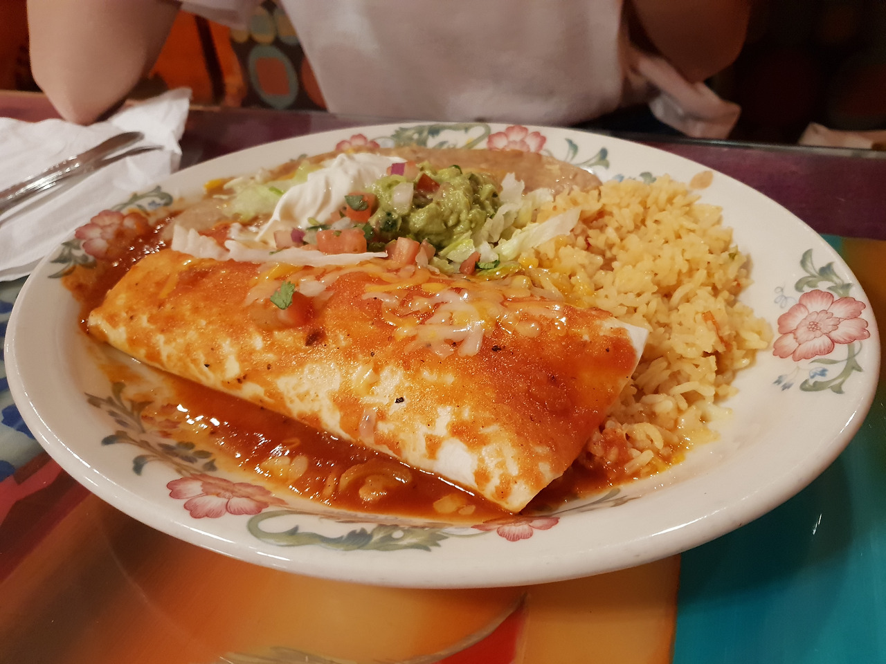 식당 안으로 들어가니 알록달록한 멕시코 풍의 인테리어가 눈에 띄었다. 약간은 촌스러운 듯 이국적인 그 모습이 내 취향에 아주 딱 들어맞았다. 식당의 직원들 역시 남미계 사람들이라서, 정말 우리가 멕시코에 온 듯한 기분이 들었다. 큰소리로 흘러나오는 남미 음악이 너무나도 신이 나서 나는 또 앉은자리에서 몸을 흔들기 시작했다. 남편은 질세라 두 검지 손가락을 드럼스틱 삼아 테이블을 두들기며 박자를 맞추었다. 흥겨운 기다림의 시간이 지나고, 드디어 우리 앞에 반가운 멕시칸 음식이 놓여졌다. 밥도 먹으랴, 동시에 춤도 추랴 밥이 코에 들어가는지 입에 들어가는지 몰랐다. 대망의 엔텔로프 캐년을 갈 생각에 한껏 들뜬 우리는, 에너지를 탄탄히 보충해야 한다고 강조하며 “한 포크(?)만 더 먹자”라는 말을 반복했다.그렇게 큰 접시를 꽉꽉 채워 한 가득 나온 음식을 참 열심히도 먹었다.