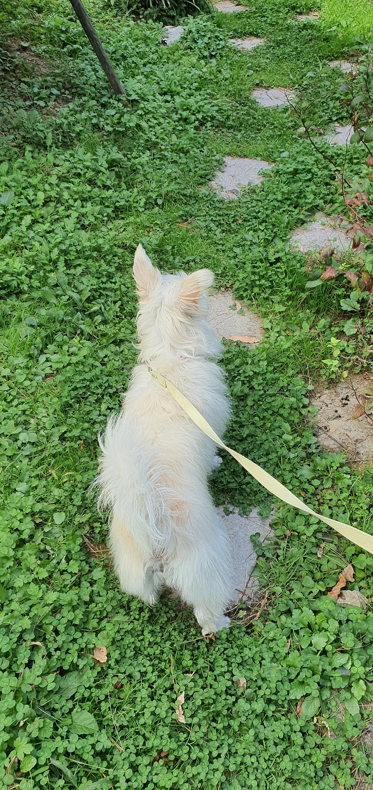 비가 그쳐도 바닥이 마르기까지는 며칠의 시간이 필요하다. 젖어있는 바닥을 산책하는 것 또한 쉽지 않다. 달콩이는 다리가 무척 짧아서, 젖은 바닥 위를 걷고 나면 다리와 배에 온갖 풀때기와 나뭇가지와 흙이 붙는다. 털 사이사이에 껴서 잘 떨어지지도 않는 이물질들을 손으로 떼고, 빗으로 빗고, 물로 씻어주면서 나는 바닥이 뽀송뽀송하게 마를 날만 기다린다. 그러다 또 뜨거운 태양이 바닥을 달구면, '아, 비 올 때가 시원하긴 했지.'하고 간사한 생각을 하게 되는 것이다. 여름에는 산책을 하다가 달콩이가 소나무에서 나온 송진이나 바닥에 터진 열매를 밟을 때도 종종 있다. 끈적한 그것들은 달콩이의 약하고 소중한 발 젤리에 착 붙어서 웬만한 방법으로는 잘 떨어지지 않는다. 안 그래도 더운 날 산책을 하면 탈진 상태로 집에 오는데, 발바닥을 닦고 털을 잘라내고 별 짓을 다 해도 발바닥이 끈적할 땐 정말 울화통이 터진다.