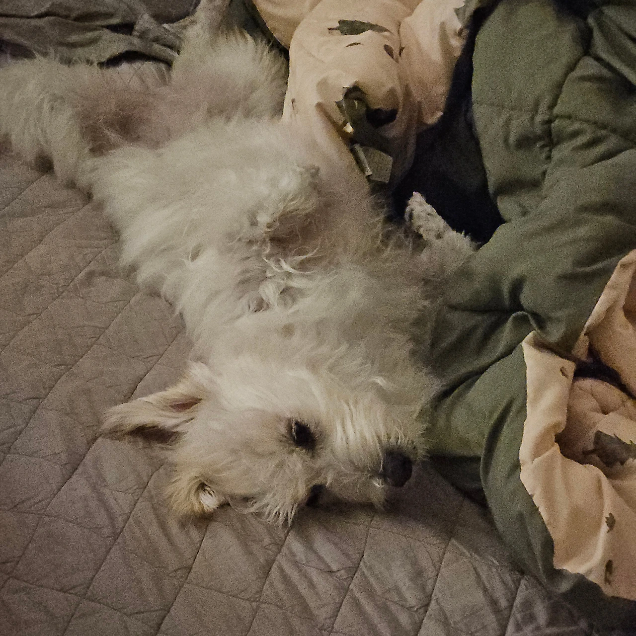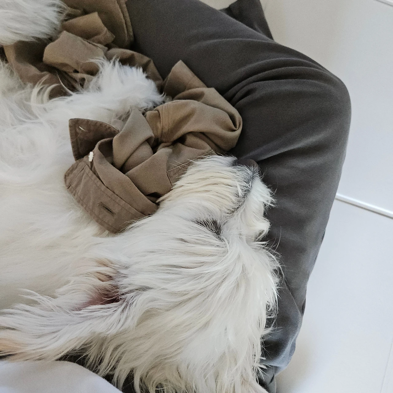 이렇게 또 인간 위주의 세상에 사느라 고생하는 달콩이의 눈높이에 우리를 조금 맞추어 본다. 여기저기 자재를 다 빼버리고 허전해진 침대 프레임 대신, 우리 셋이 내뿜는 따스한 공기가 침대를 꽉 채운다.