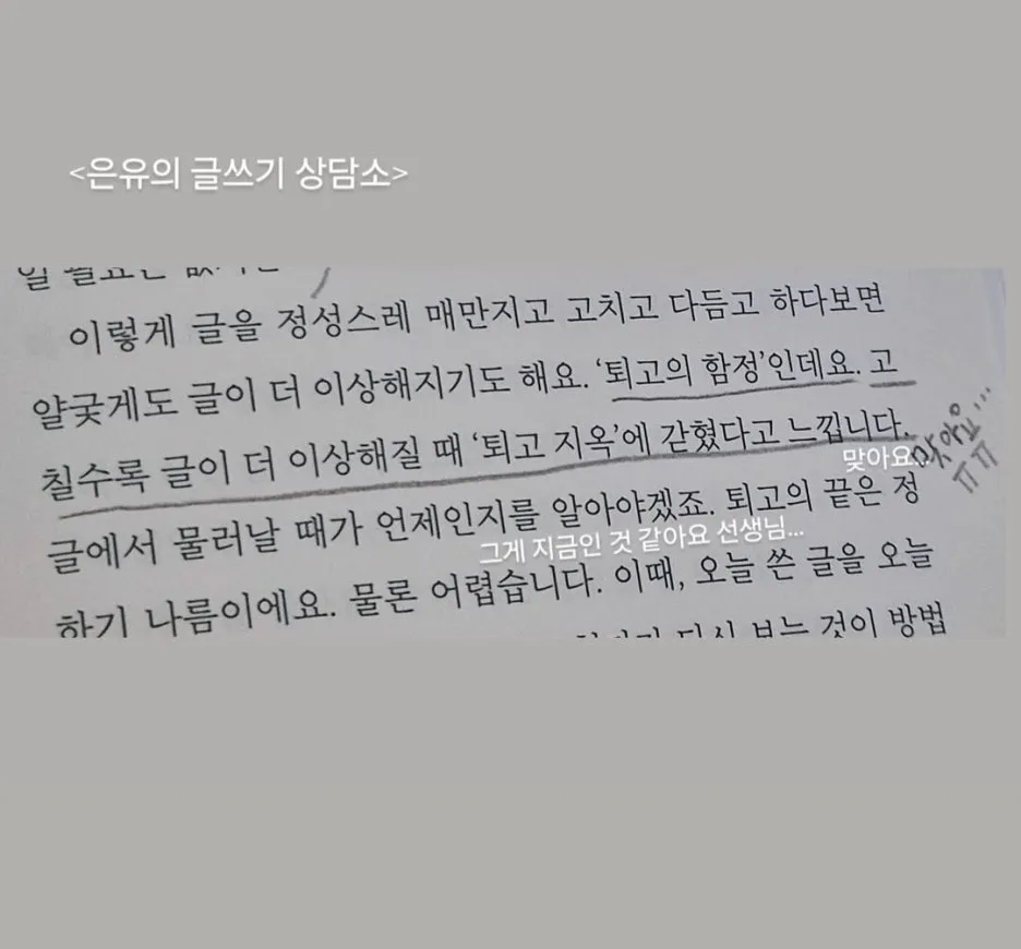 하지만 요즘 남편이 너무 바빴기에 차마 읽어달라는 말을 하지 못했다. 그러다 이번에도 2교가 되어서야 그가 짬을 내어 원고를 읽어주었다. (다는 못 읽었지만 반 정도 읽었다.)