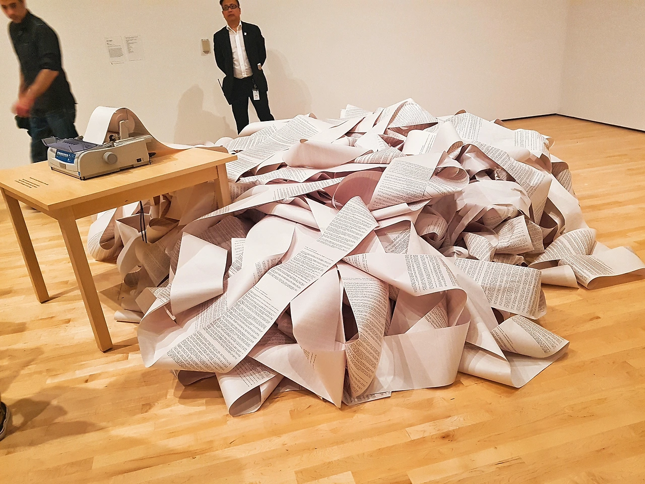 어찌 됐든 우리는 관람을 하기 시작했다. 무려 7층이나 되어 규모가 꽤 큰 미술관이었다. 그냥 훑어보고 나가자던 마음과는 달리, 흥미로운 작품이 많아서 자꾸 발걸음이 묵직해졌다. 전시를 보고 있는데 어딘가에서 낡은 프린터 소리가 들리기 시작했다. 그 소리가 부르는 곳으로 따라가 보니 프린터에서 종이가 끝도 없이 인쇄되어 나오고 있었다. 역시 현대 미술은 엉뚱하고도 재미있는 매력이 있다. 우린 그 매력에 빠져서 꽤 오랜 시간을 미술관에서 보내버렸다. 그중 상당 시간을 기념품 샵에서 보낸 것은, 어쩔 수 없는 본능이었다고 치자.