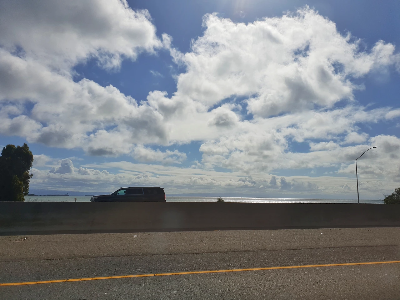 사우스 샌프란시스코 가는 길. 저 멀리 샌프란시스코 만이 보인다.