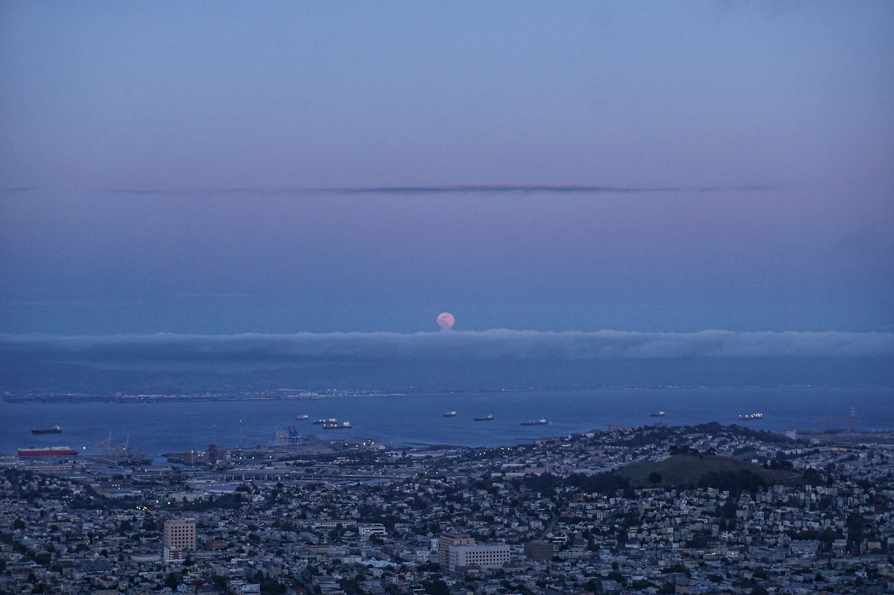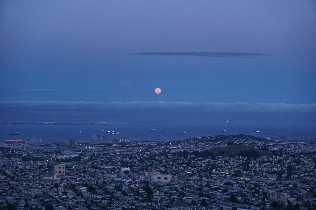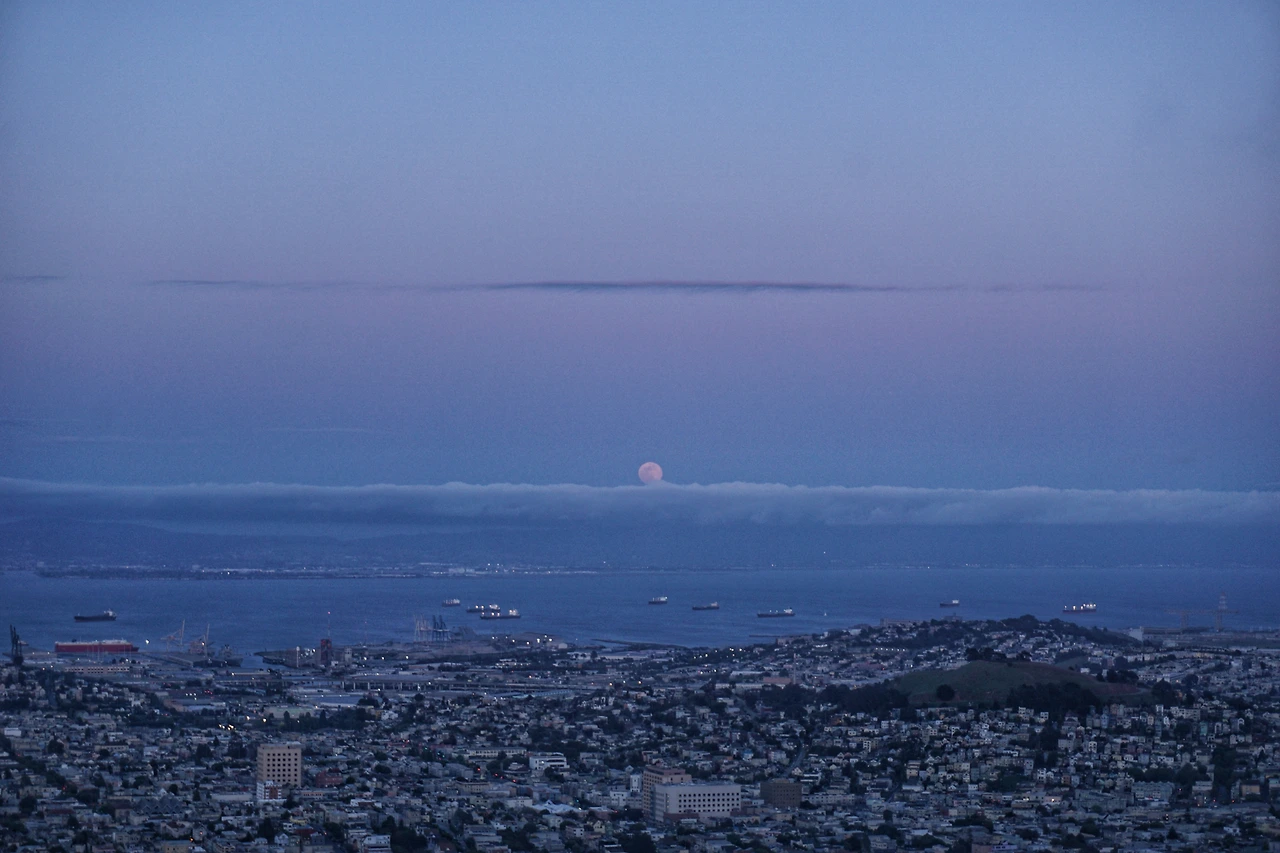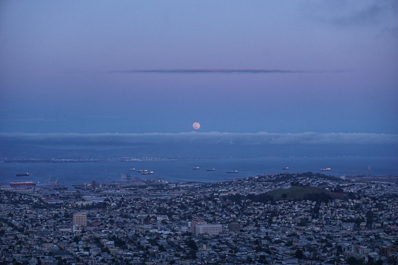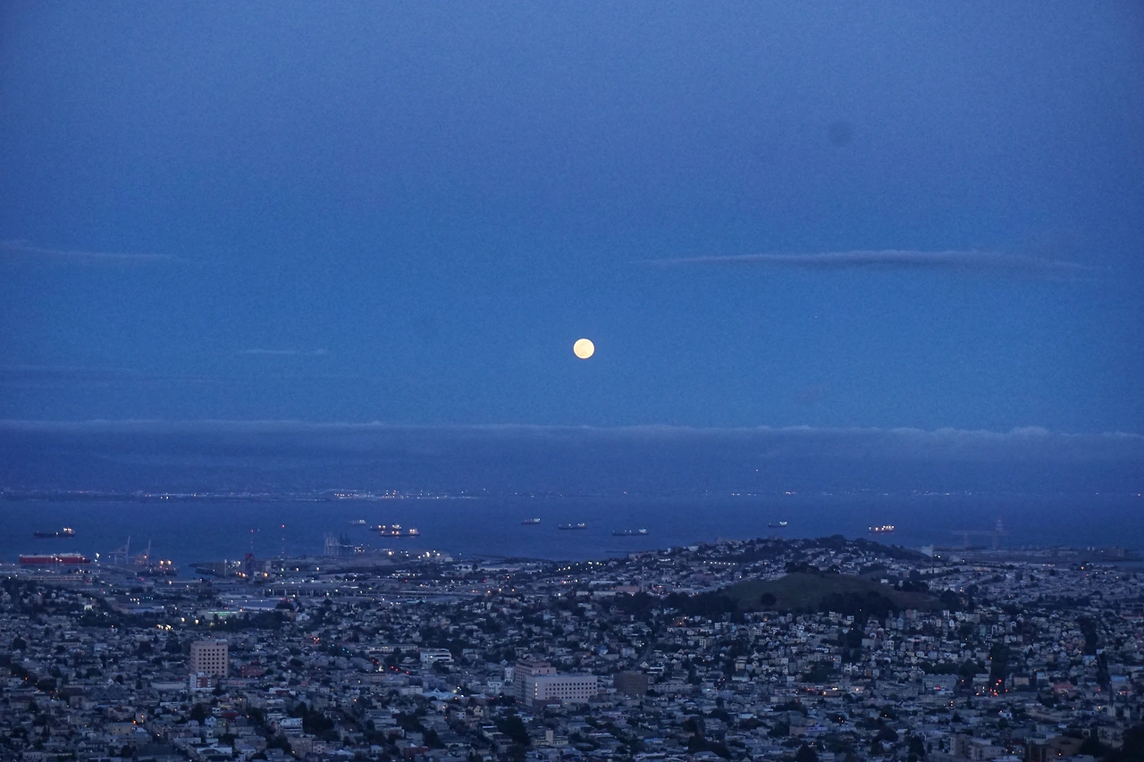 금방이라도 감기에 걸릴 것 같았기에, 달이 어느 정도 높이 뜬 뒤 우리는 차 안으로 들어가 몸을 녹였다. 그리고 샌프란시스코 건물들에 하나 둘 불이 켜지는 것을 지켜보다가, 완연한 밤이 찾아오자 다시 나가서 그 야경을 감상했다. 역시나 샌프란시스코의 낭만은 바람에서 시작하여 바람에서 끝나고 있었다.
