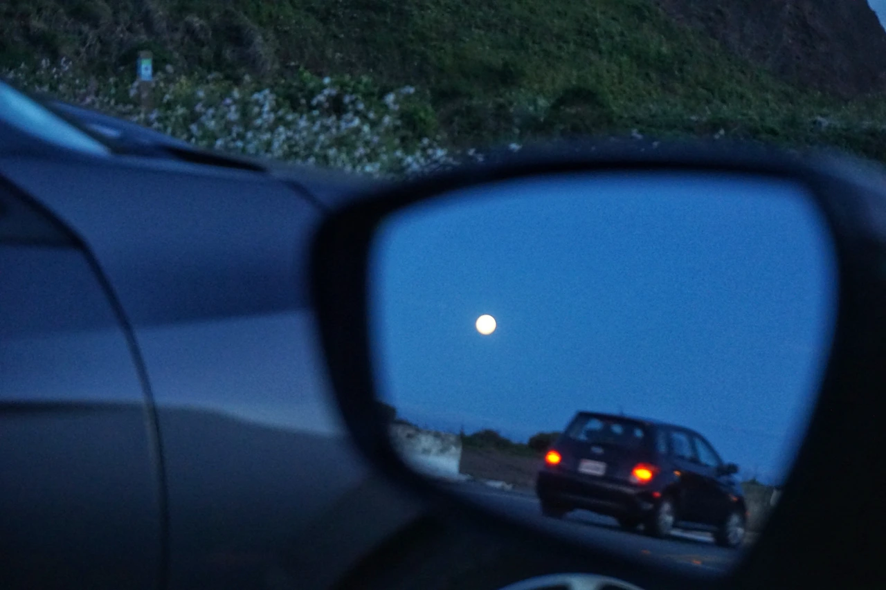 차에 들어온 뒤에도 달에서 눈을 뗄 수 없었다.