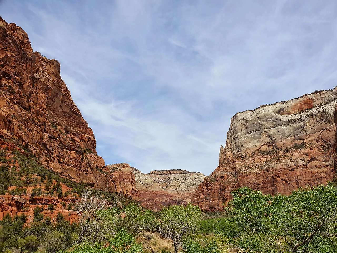 런데 바로 자이언캐년에서 그것이 가능했다. 즉, 비교적 협곡의 아래쪽 서서 위로 그 모습을 올려다볼 수 있었다. 한눈에 모든 것을 내려다보는 것이 아니라, 좀 더 낮은 자세에서 이 곳을 하나하나 아껴가며 알아가는 기분이랄까. 그래서 탁 트인 전망은 아니어도 확실히 또 다른 매력이 있었다. 마치 이 자연의 일부가 되어 속해있는 느낌이었다.