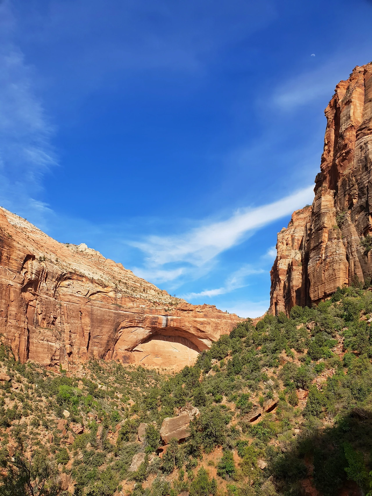 길이 조금 무섭긴 했지만, 운 좋게도 우린 주차장을 나서고 나서도 한참 동안 자이언캐년을 느낄 수 있었다. 가는 길이 계속해서 자이언캐년의 연장선이었기 때문이다. 반달 모양의 다리처럼 생긴 암석을 발견하고 신기해서 차를 세우고 구경했는데, 나중에 찾아보니 그곳도 “The Great Arch”라는 명소였다고 한다.