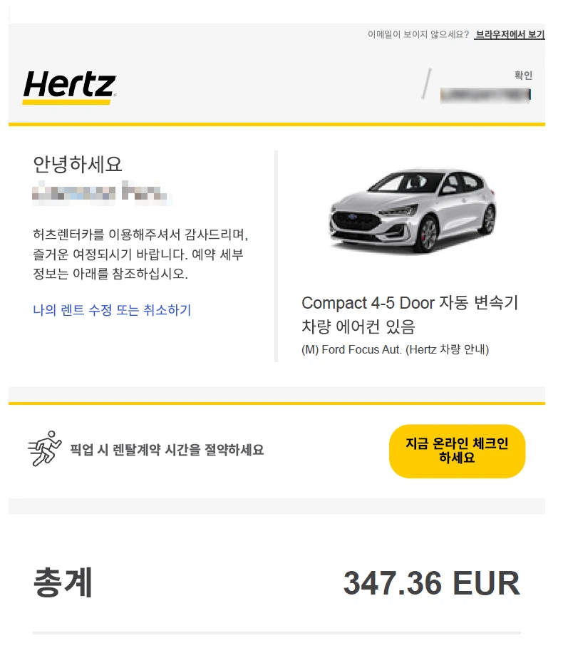 프랑크푸르트 공항 허츠(Hertz) 렌터카