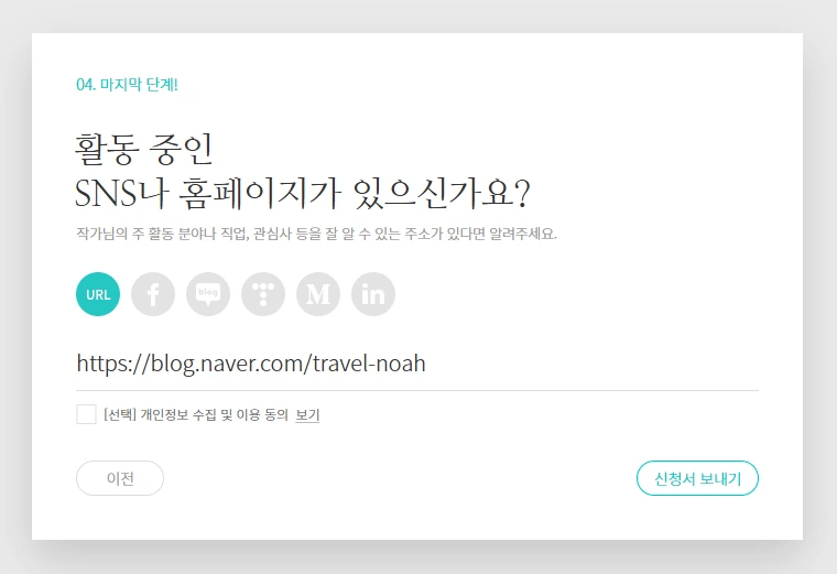 브런치스토리 작가 신청 시 실제로 제출했던 내용이다.