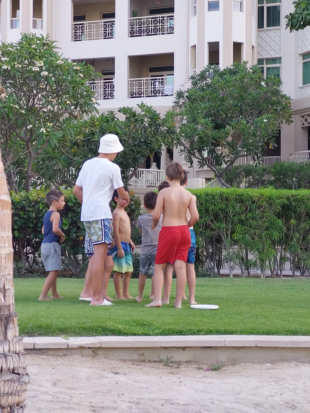 수영장에서 두 어 시간을 놀다가 한 친구가 먼저 집으로 돌아갔다. 잘 가라는 인사를 나누자마자 남은 아이 둘은 해변으로 내달린다. 그리고는 그곳에서 축구를 하고 있던 두 살 많은 형아들에게 다가가 다짜고짜 서로 통성명을 하면서 "Where are you from(너 어디에서 왔니)?"이라고 묻고 답한다. 참으로 두바이적인 풍경이다. 아닌 게 아니라 아랍에미리트는 이 지역 토박이인 에미라티가 아닌, 외국인 거주자의 비율이 90%에 육박하는 나라다. 게다가 두바이는 특히나 더 국제적인 도시이니 어디에서든 다양한 국적과 인종의 인간군상들을 만나는 것이 일상인 까닭이다. 한국 아이 한 명, 영국 아이 두 명, 이집트 아이 한 명으로 시작된 경기가 재미있어 보였는지 이탈리아 아이 두 명과 러시아 아이 두 명, 그리고 국적을 알 수 없는 아이 한 명이 합세해 순식간에 꽤나 다국적 팀이 꾸려졌다. 연령대도 다양하다. 제일 큰 아이는 10대 후반쯤 되어 보이고 가장 어린아이는 다섯 살 정도인 것 같다. 볼 때마다 신기하고 재미있는 사실은 나이도 국적도 인종도 종교도 상관하지 않고 아이들은 어울려 잘 논다는 것이다. 가만히 엿들어 보니 가장 어린 꼬마가 정말로 아무말대잔치 같은 주장을 해도 가장 큰 형아들까지도 그 말을 무시하지 않고 끝까지 귀 기울여 듣고 있다. 그런 풍경은 가끔은 그렇게 행동하지 못하는 나이만 먹은 어른들에게 대견함을 넘어 존경하는 마음까지 피어오르게 만든다.