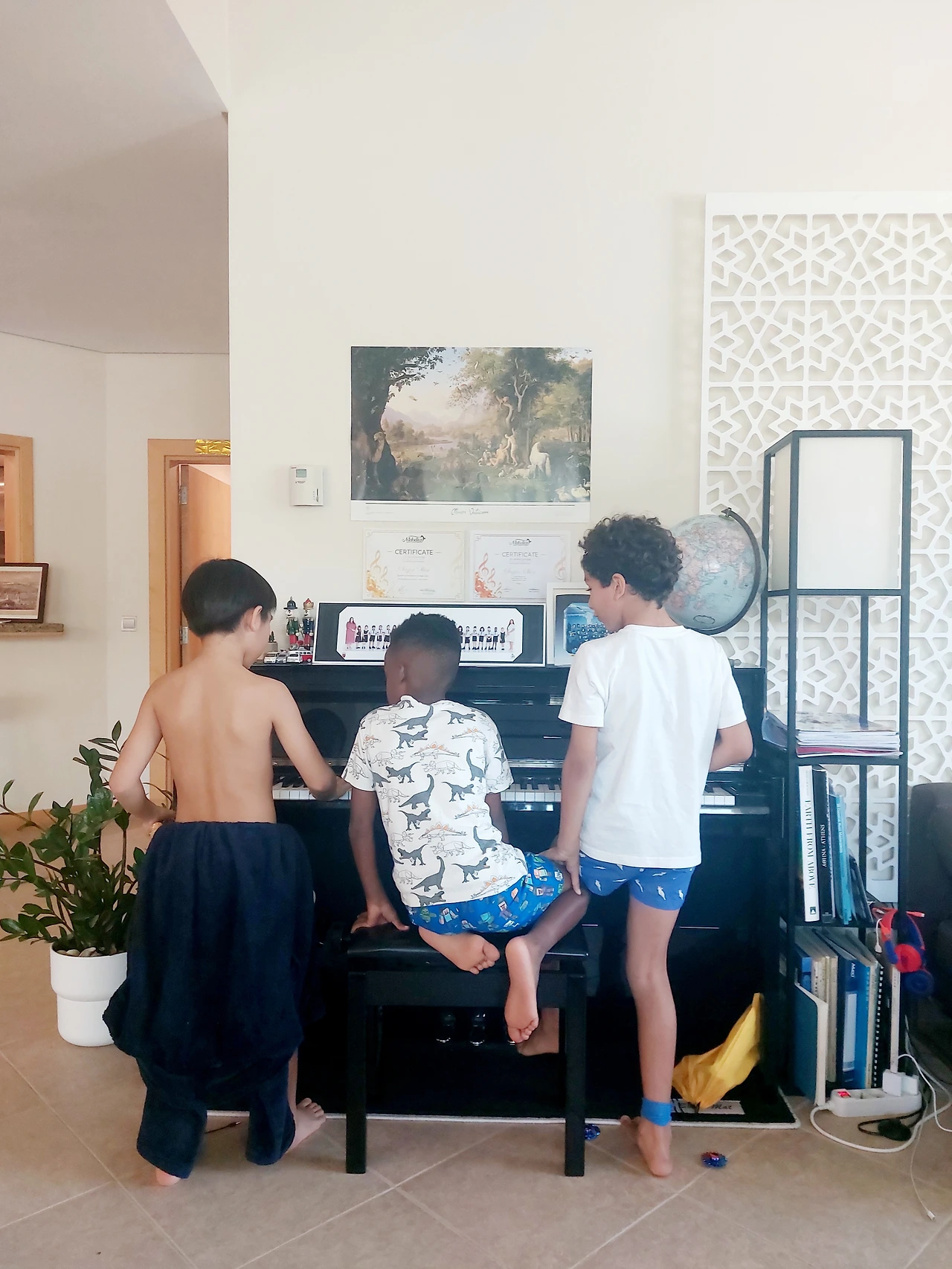 금요일마다 아이는 정오 즈음 하교를 한다. 평소보다 세 시간 일찍 학교에서의 일과가 끝나는 날이기도 하고 일주일 간의 나름 고된 어린이의 사회생활을 마무리 짓는 날이기도 하니 나는 너 수고 많았다, 어깨 툭툭 의미로 플레이 데이트* 계획해 주곤 한다. 이번 주에도 같은 반 친구 두 명을 집으로 초대했다. 아이들은 둘러앉아 팽이 수 십 개를 경쟁하듯 돌리더니(몇 개 고장남) 곧이어 피아노를 열어젖혀 셋이 동시에 건반이 부서져라 두드리고선(진짜 부서지는 줄 알았다...) 간식을 먹은 후 수영장으로 달려 나갔다.