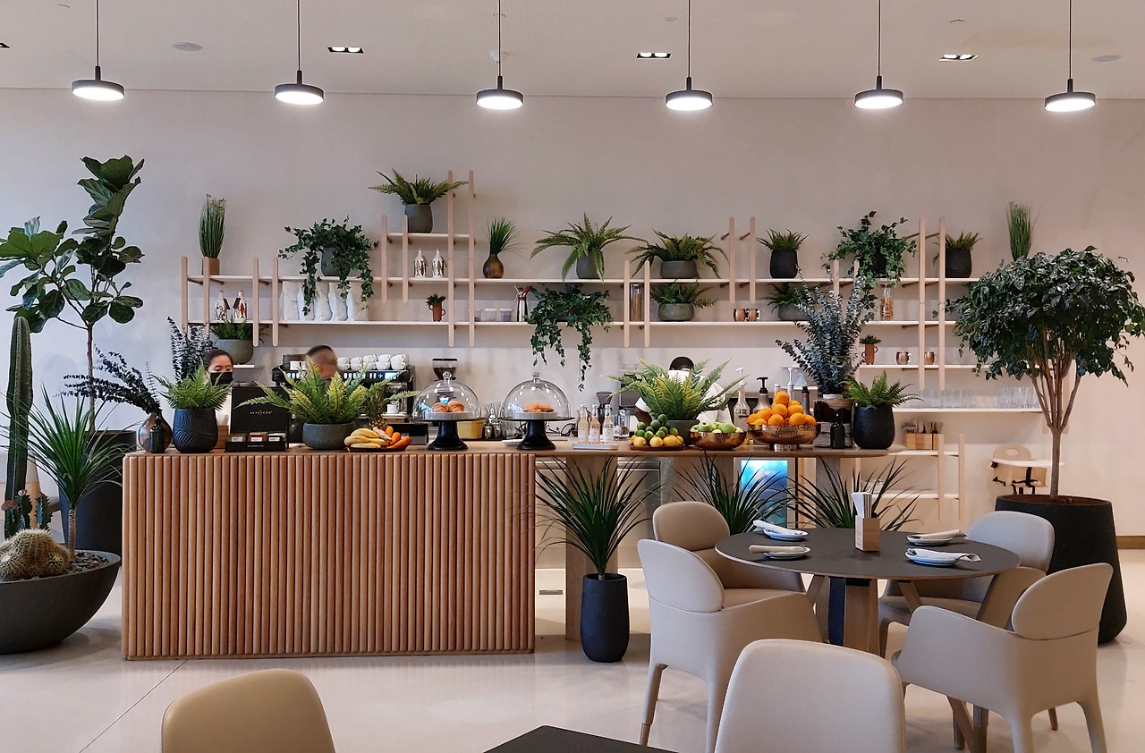 이용객들을 위한 도서관 내 편의시설. 왼쪽이 레스토랑이고 오른쪽이 카페다.