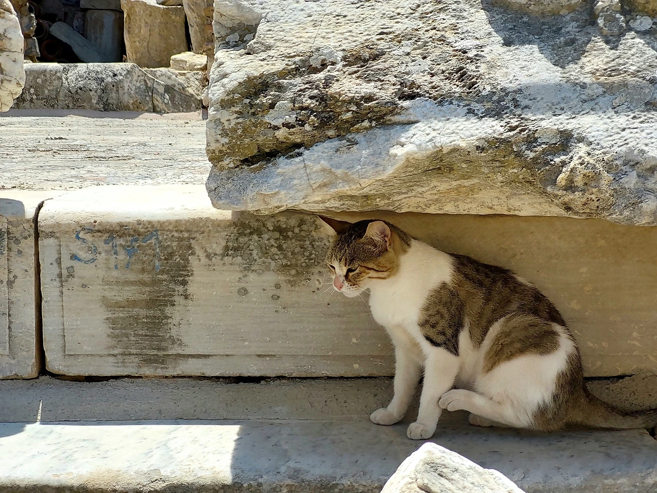 구경거리가 넘치는지라 발걸음을 마냥 재촉하기에는 너무나도 아쉬운 곳이었다. 문제는 그 드넓은 유적지에서 햇볕을 피할 장소를 찾기가 하늘의 별따기만큼이나 어려웠다는 것. 손바닥만 한 그늘이라도 드리운 곳이라면 사람이든 고양이든 누군가는 꼭 자리를 차지하고 있었다. 정수리가 타버릴까 무서워 땀을 뻘뻘 흘려가면서도 모자를 눌러쓰고 있던 우리 가족도 몇 번의 시도 끝에 마침내 그늘진 구석자리 하나를 찾는 데 성공했다. 나무 그늘 아래에 앉아 모자까지 벗어버리고 나니 그제야 시원하게 달려드는 바람이 느껴진다. 여유를 되찾은 우리는 오래전 이 땅에 살던 이들이 머물던 집이며 인고의 시간을 거쳐 깎아 냈을 조각상들, 오늘날의 화장실과 너무나도 비슷해 기어코 탄성과 웃음이 터져 나오게 만드는 공용 화장실과 고대인들의 바람이 담긴 신전과 원형 경기장을 눈에, 그리고 마음에 다시금 담아 보았다. 에페소스의 오늘 안에는 과거의 시간들이 놀랍도록 싱싱하게 펄떡이고 있었다.