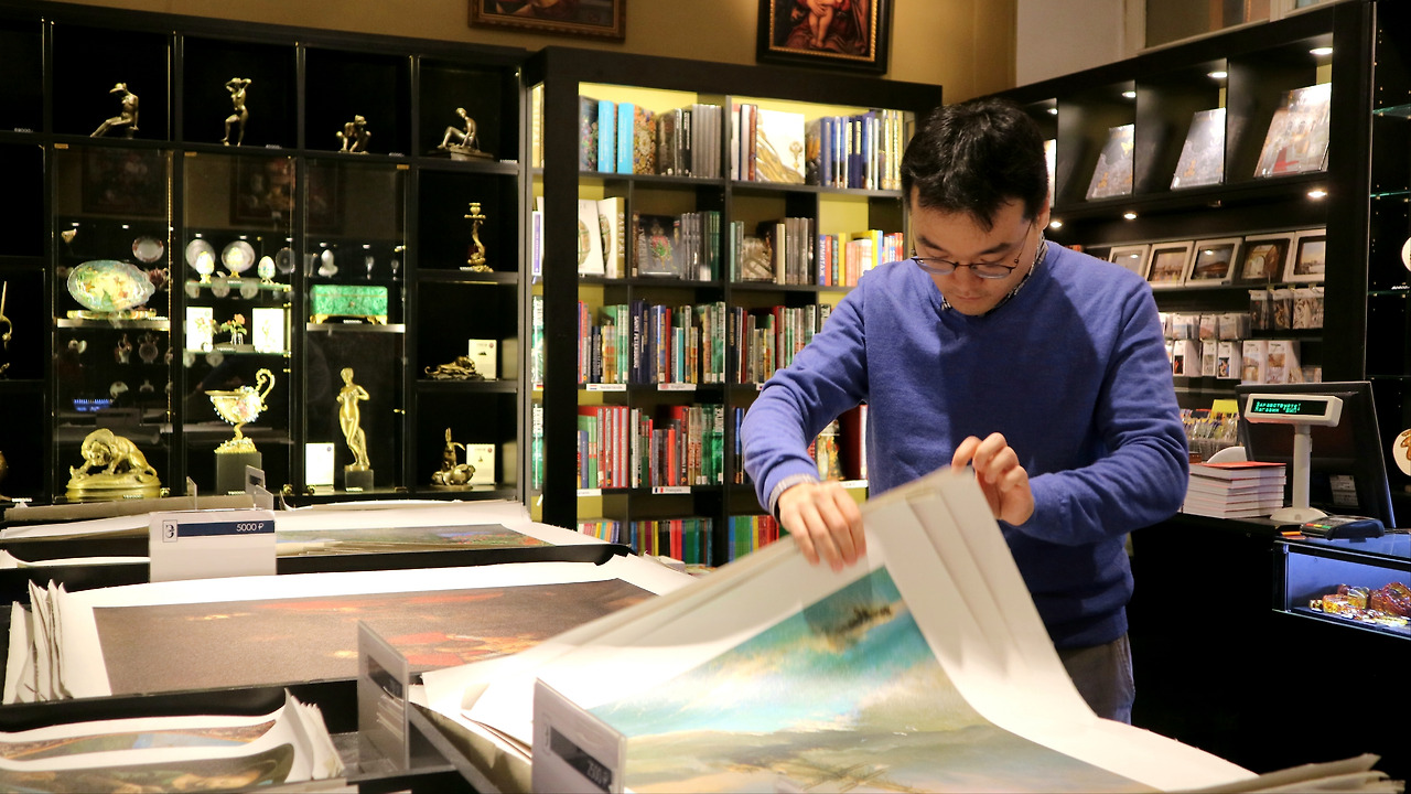 예카테리나 2세만큼은 아니지만 그림을 사서 집 이곳저곳을 장식하기 좋아하는 우리 가족은 상트페테르부르크 방문을 앞두고 일부러 커다란 여행가방 하나를 텅텅 비운 채로 챙겨 갔다. 마침 러시아 루블화 환율이 우릴 미소 짓게 하는 상황이었기에 예르미타시 미술관 샵에서 마음에 드는 그림을 잔뜩 사 트렁크를 꽉 채워오겠다는 계획을 했던 것이었다.