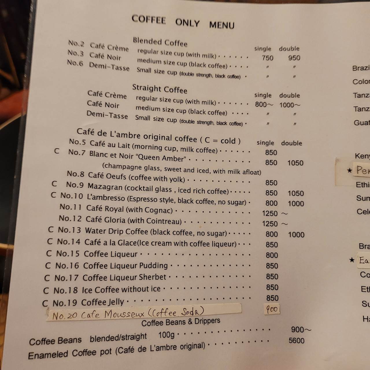 우리가 주문했던 커피는 아마 Cafe Noir과 이 집의 시그니처라고 추천받은 Blanc et Noir "Queen Amber".