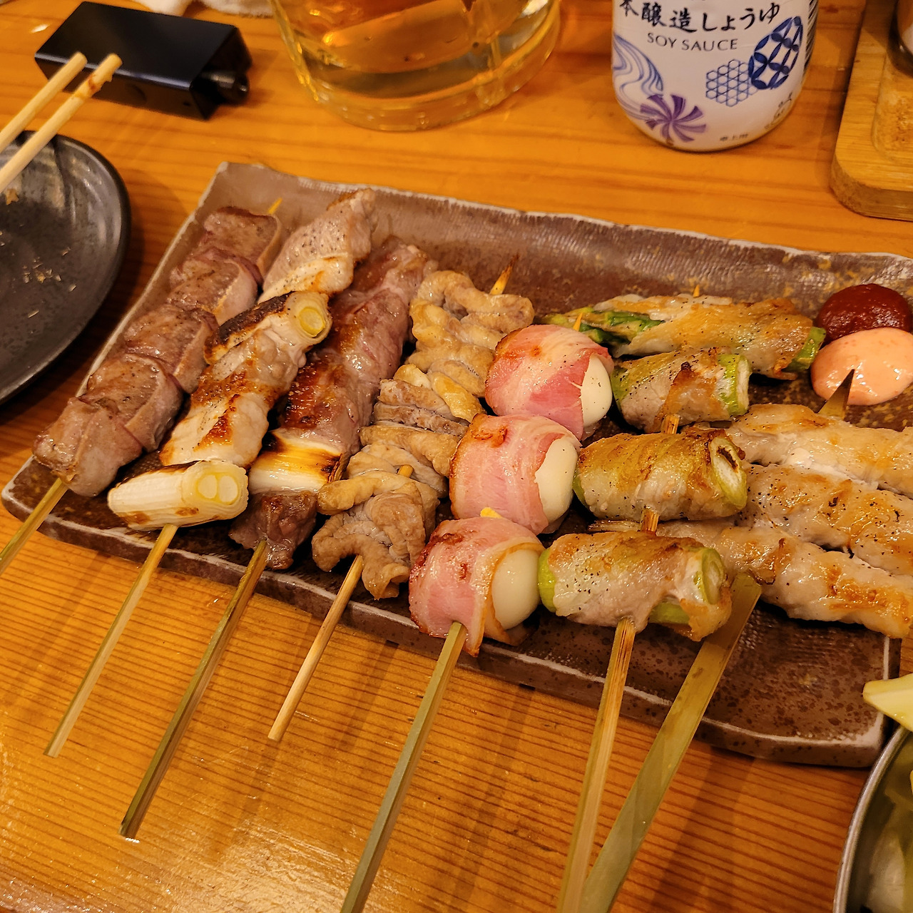 츠쿠네(つくね): 180엔. 다진 닭고기를 둥글에 말아 완자 형태로 만든 꼬치다.