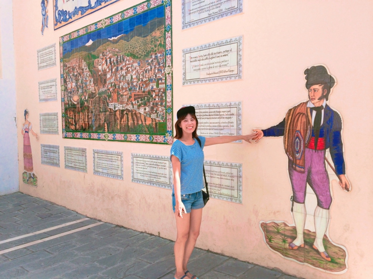 멋쟁이 투우사 벽화와 손잡고서