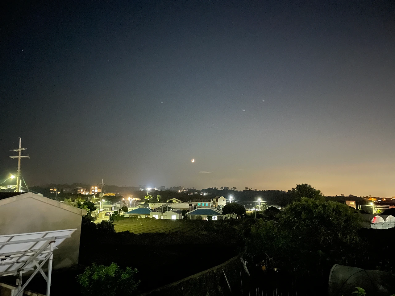 아래쪽으로 배를 볼록 내민 달이 너무 예뻐 산책가는 것도 까먹을 뻔했네요.