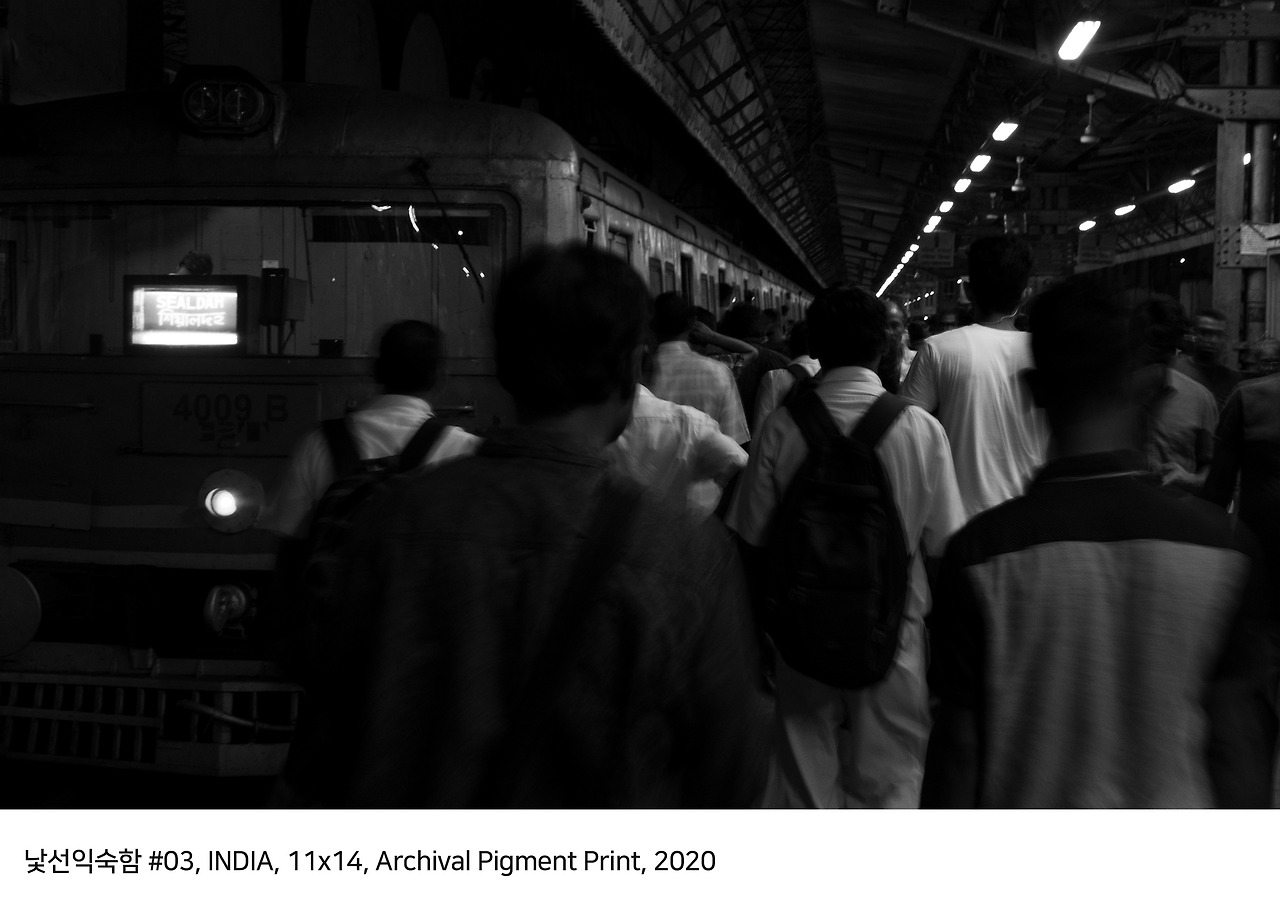 이제 우리는 이 낯선 곳에서 살기 위해 본능적으로 익숙한 것을 찾는다. 아무리 낯선 환경이더라도 평소 익숙한 것을 찾을 때 우리는 조금씩 평온해지기 시작한다. 그게 무엇이 되었건 익숙함을 찾아 평소에 별로 신경 쓰지 않는 세세한 것들부터 익숙함을 찾아 떠난다. 마치 어렸을 적 보물찾기 하는 것처럼 말이다. 사실 익숙함은 장소 공간 상관없이 늘 우리 곁에 있었다. 단지 우리는 일상 속에 매일 마주치기에 인식을 하지 못할 뿐. 그렇게 조금씩 낯선 곳에서 익숙함을 하나씩 찾다 보면 어느새 낯선 익숙함 이란 또 다른 세계로 이어지는 문과 조우하게 된다. 그 문을 통과하고 우리는 조금씩 성장해 나간다. 낯선 익숙함에 적응해 또 다른 낯선 익숙함을 찾아 다시 떠나는 길, 낯선 익숨함에 빠진 우리네의 삶의 현장이다.