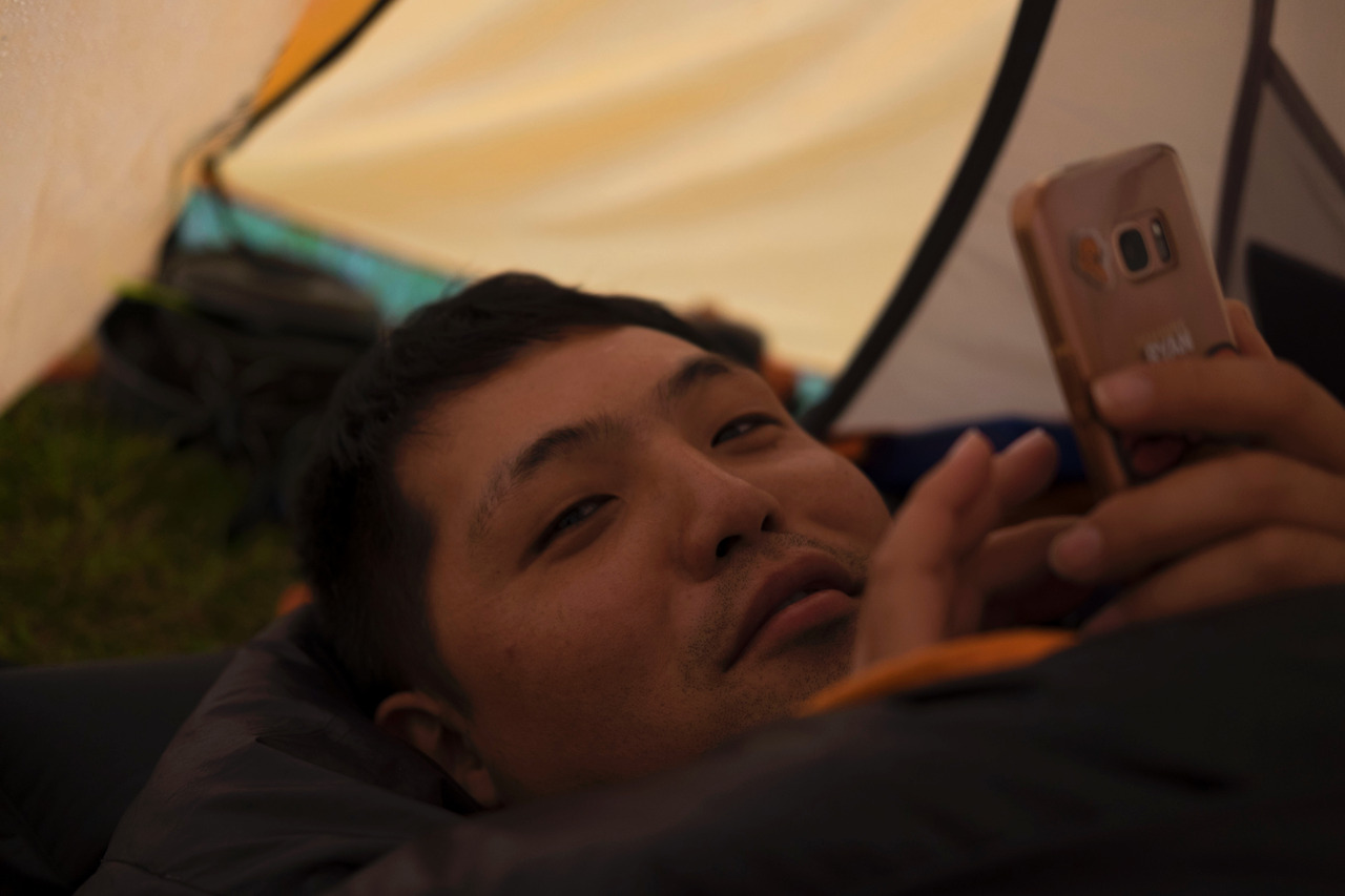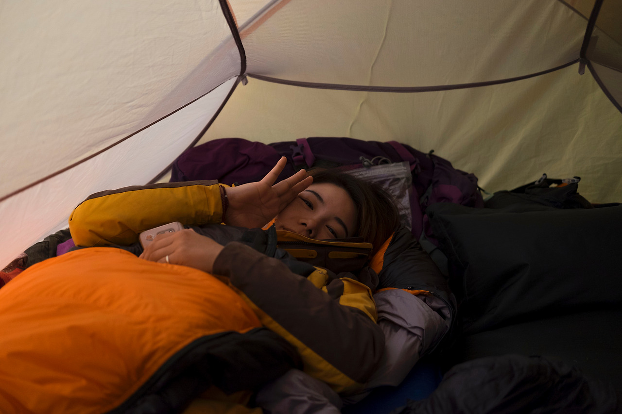오리털 침낭 없이는 따뜻하게 자기 힘들다.