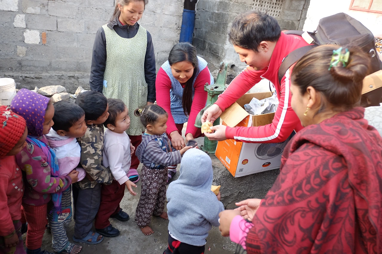 우리를 태운 차는 공항 근처에 있는 어떤 빈민촌에 내려다 줬다. 이제부터 본격적으로 봉사활동을 시작한다. 일단 우리의 재능을 가지고 사역을 시작했다. (나는 가족사진 촬영 사역, 대광이는 찬양사역) 보통 우리들은 네팔에 오면 주로 관광지에 머문다. 카트만두의 타멜, 포카라의 레이크사이드 등 이곳들은 관광특구지역으로 중심가에 위치해 있고 (서울로 치면 명동, 북촌과 같다.) 가장 번화가고 관광객들을 상대로 호텔, 카페, 레스토랑, 상점, 은행, 여행사 등등 온갖 편의시설이 모여있다. 관광하기에는 편하다. 그러나 현지들이 사는 로컬 지역은 우리는 어지간해선 가지 않는다. 낙후되고 치안이 불안하기 때문이다. 하지만 진짜 현지인들 삶을 알려면 로컬 지역만 한 곳은 없다. 다만, 우리가 알고 싶다고 그들의 의사와 상관없이 삶의 터전을 함부로 침범하는 건 바람직하지 않다. 상호 간의 신뢰와 이해관계가 맞어떨어질때 비로소 다가갈 수 있다. 우리는 그들의 삶과 터전을 존중해야 하고 그들의 인권을 지켜줄 의무가 있다.