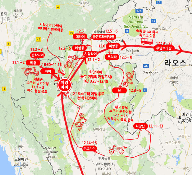 치앙마이 - 치앙라이 - 메살롱 - 메싸이 - 골든 트라이앵글 - 치앙콩 - 푸치파 - 난 - 치앙칸 -