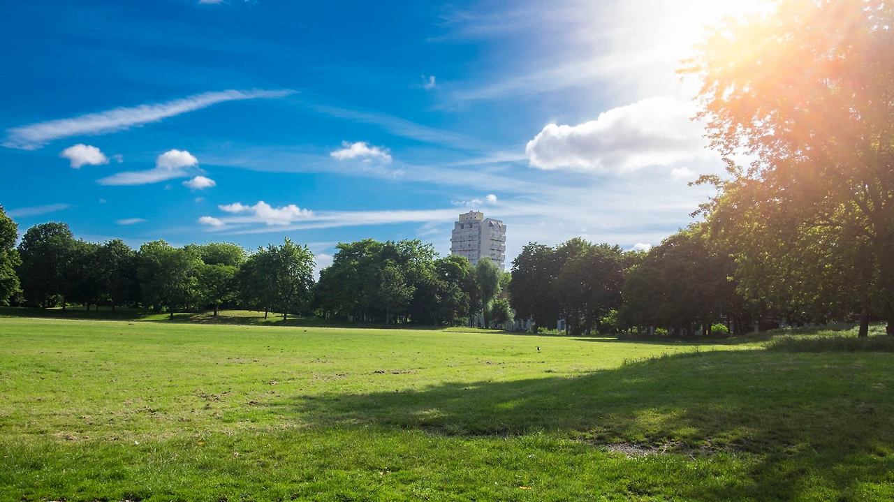 하지만, 무거운 배낭을 메고 길거리에서 무작정 기다리긴 힘들었다. 그때 마침 근처에 공원 있다는 간판이 하나 보였다. 슈빙이랑 곧장 그 공원을 향해 이동했다. 잠시 후, 우리 눈앞에 초록빛 잔디 그리고 푸른 하늘이 아름답게 펼쳐진 공원에 도착했다. 6월의 런던은 날씨가 매우 맑고 깨끗했다. 마치 우리가 런던에 온 것을 환영한 듯 너무나 기분 좋은 날씨였다. 오전 시간대라 공원은 참 평화로웠다. 가끔 산책하는 사람, 조깅하는 사람들만 지나갈 뿐... 우리는 공원 양지바른 잔디에 자리를 잡았다. 그리고 무거운 배낭을 내려놓고, 누웠다. 우리 눈에 비친 파아란 하늘, 그사이로 비행기 한대가 지나가고 런던의 첫인상은 아름답고 평화롭다.
