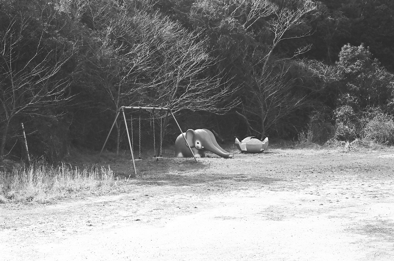 오래된 놀이터. 주민 대부분이 노인이 많은 히타카츠에는 어린이들을 보기 힘들다. 그러나 한때는 이 마을도 제법 아이들이 많았었음을 이 놀이터를 통해 알 수 있다. 지금음 공터로만 남았다. 그네와 코끼리 미끄럼틀이 놀이터를 외롭게 지키고 있다.