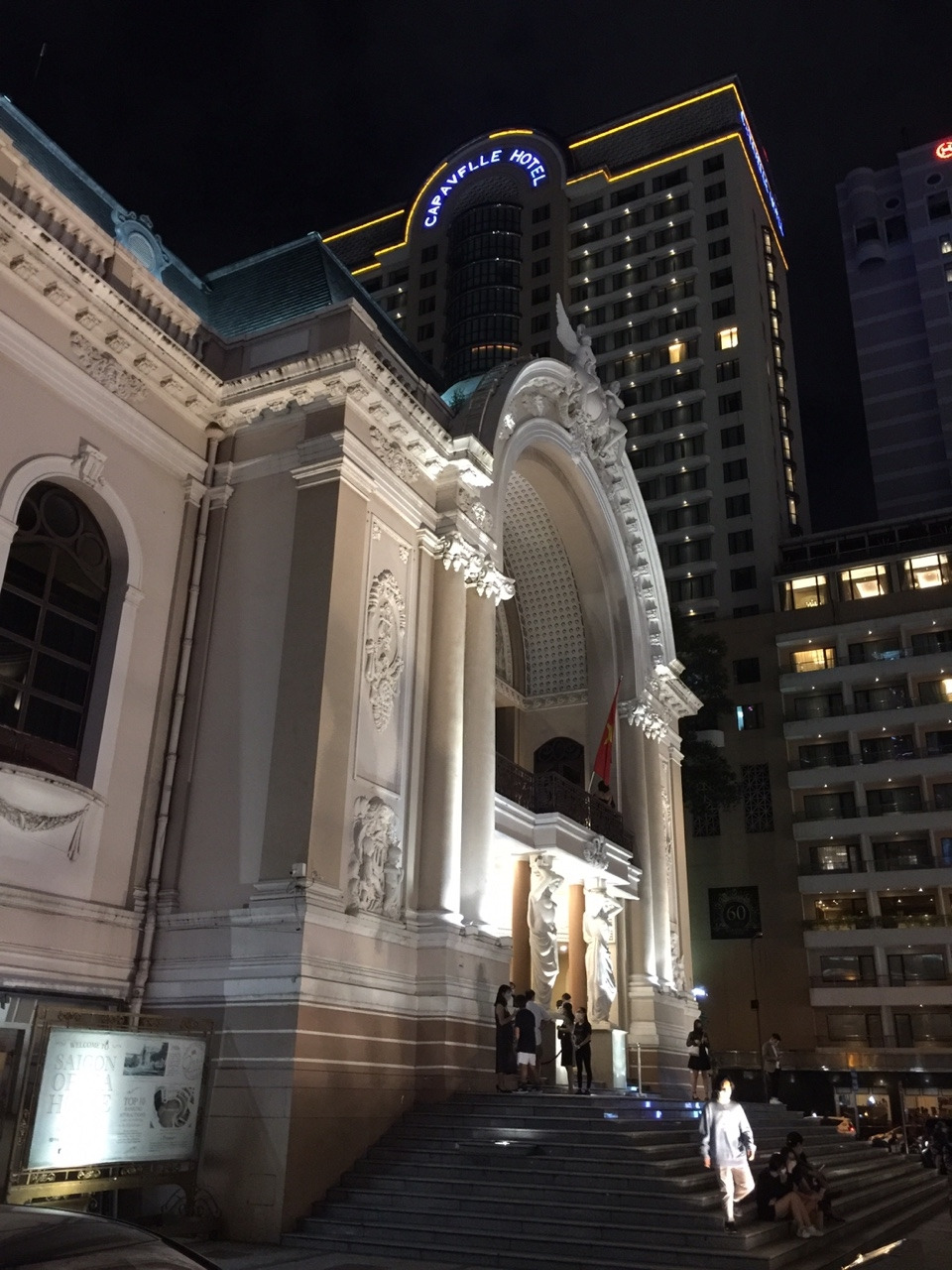 오페라 하우스의 입지를 보면, 관람료 비싼 게 당연하다는 생각이 든다. 주변에는 루이뷔통, 에르메스, 구찌 등 온갖 명품 매장이 모여 있었다. 호찌민에서 역사적으로 가장 유명하다는 두 개의 호텔도 오페라 하우스를 호위하듯 양 옆에 우뚝 서 있었다. 왼쪽에는 1880년에 건립된 역사적 호텔인 콘티넨탈 호텔이, 오른쪽에는 호찌민에서 가장 호화로운 호텔로 꼽히는 카라벨 호텔이 있다. 콘티넨탈 호텔은 영국 소설가 그레이엄 그린의 소설이자 두 차례나 영화화된 적이 있는 ‘조용한 미국인(The Quiet American)’의 주요 배경이었던 곳이고, 카라벨 호텔 또한 베트남 전쟁 당시 외신 보도국과 대사관이 있었던 곳으로 수많은 역사를 품고 있다. 이밖에도 파크 하얏트, 쉐라톤 등 최고급 호텔들이 오페라 하우스를 둘러싸고 위치해 있다. 길 바로 건너편에는 만다린 오리엔탈 호텔의 공사가 한창이었다.