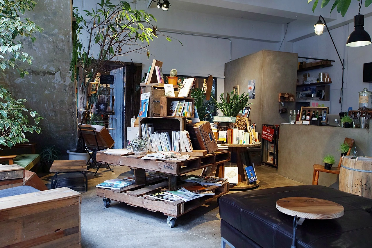 ‘루트 북스’에 가까워질수록 삭막한 회색 건물 사이로 초록이 눈에 들어온다. 어떤 집은 현관 부분만 빼고 한쪽 벽면을 전부 다 화분으로 채웠다. 그렇게 우에노의 뒷골목을 걷다가 루트 북스와 마주친 순간, 입구에서부터 느껴지는 남다른 센스에 안으로 들어갈 생각은 않고 카메라를 이리저리 바쁘게 움직이게 된다. 문의 왼쪽은 온실처럼 꾸며진 꽃집, 오른쪽은 커피를 마시며 책을 읽을 수 있는 공간이다. 쑥쑥 자란 키 큰 화분들의 잎과 가지가 서가에 제멋대로 쑥 끼어들었다. 책꽂이나 의자, 테이블도 어딘가 모르게 투박하다. 루트 북스의 가구는 옛 목공소 자리에 다시 들어선 목공소에서 직접 만들기 때문이다. 유리가 없는 창문 너머로 대패질을 하는 청년의 모습이 보인다. 머리에 수건을 질끈 동여매고 끊임없는 반복 동작을 하고 있는 그에게 내 손에 들린 시원한 진저에일을 건네고 싶어진다.