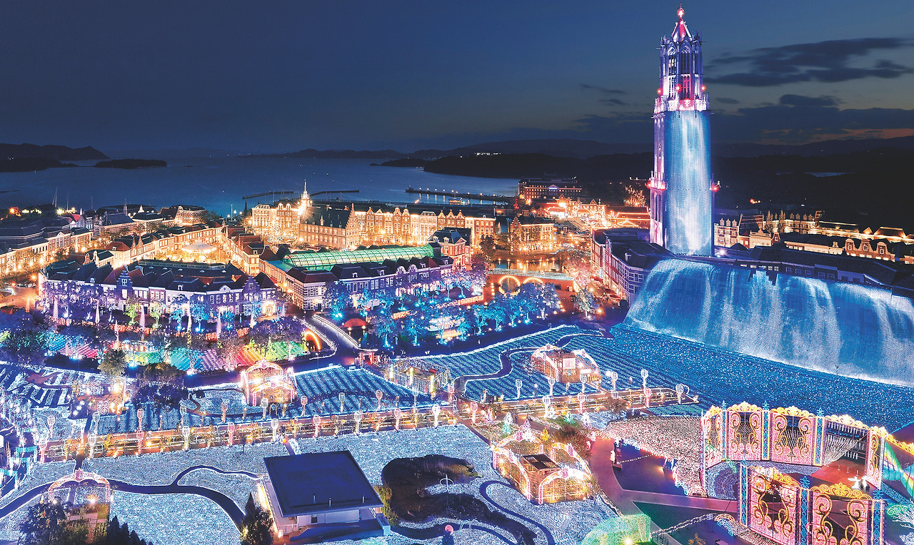 하우스텐보스는 나가사키현 사세보시에 위치하고 있다. 중세 네덜란드를 모티브로 한 이곳은 아시아의 작은 유럽으로 불린다. 도시를 가로지르는 아름다운 운하, 오락시설, 박물관, 레스토랑, 호텔 등의 다양한 시설을 갖춘 리조트다. 특히 꽃축제와 일루미네이션이 화려한 ‘빛의 왕국’축제로 유명하다.