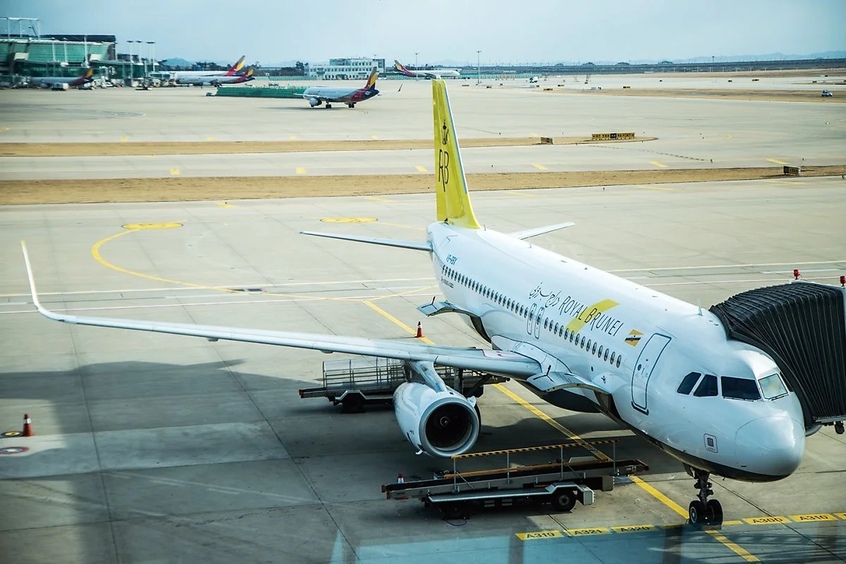 로열브루나이항공이 2017년 11월 26일부터 주 2회(일요일, 목요일) 직항 정규 편을 취항하면서 이동이 편리해졌다. 비즈니스와 프리미엄 이코노미, 이코노미 등 총 150석의 A320 항공기가 투입되며 이코노미석의 좌석 간 간격은 32인치로 넉넉하다. 편도 비행시간은 5시간 30분가량이며 비행기 탑승 전에 휴대폰이나 태블릿 등의 디바이스에 로열브루나이항공의 애플리케이션을 설치할 것을 추천한다.