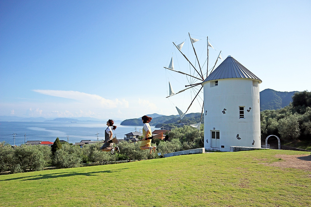여기가 일본이 맞나 싶다. 끝없이 펼쳐지는 초록 융단 올리브 나무 끝에 새하얀 풍차가 그림처럼 서 있다. 이번에는 그리스에 온 것만 같은 느낌이다. 바로 쇼도시마 여행의 필수코스, 올리브 공원이다. 여기에 세토우치의 푸른 바다까지 더해져 있으니 가슴이 뻥 뚫리는 이국적인 풍경을 만들어 냈다. 영화 <마녀배달부 키키>의 촬영지로도 유명해 많은 여행객들이 풍차 앞에서 빗자루를 탄 키키가 되어 기념촬영을 하고 있다. 이제는 명실공이 쇼도시마의 트레이드 마크가 된 게 분명하다. 빗자루는 올리브 기념관에서 무료로 대여해 준다. 주변에는 작은 가게가 산재돼 있는데 이곳에서 각종 기념품과 올리브유, 올리브소다 등을 구매 할 수 있다.