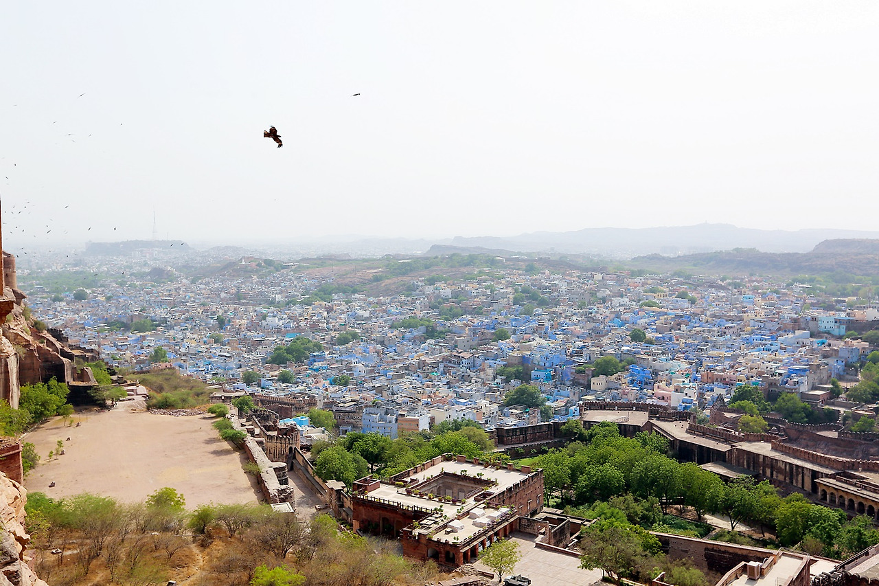메헤랑가르성 곳곳의 포탄 자국이 격렬했던 전쟁의 흔적을 말해 준다. 움푹 파인 흔적을 손으로 더듬으며 성 꼭대기에 오르니 사람들이 한 곳을 바라보고 있었다. 성벽을 따라 작은 집들이 다닥다닥 붙어 있는데 온통 파랗다. 저 곳이 너무나도 궁금하다. 가까이 다가가고 싶은 맘에 서둘러 성을 나왔다.