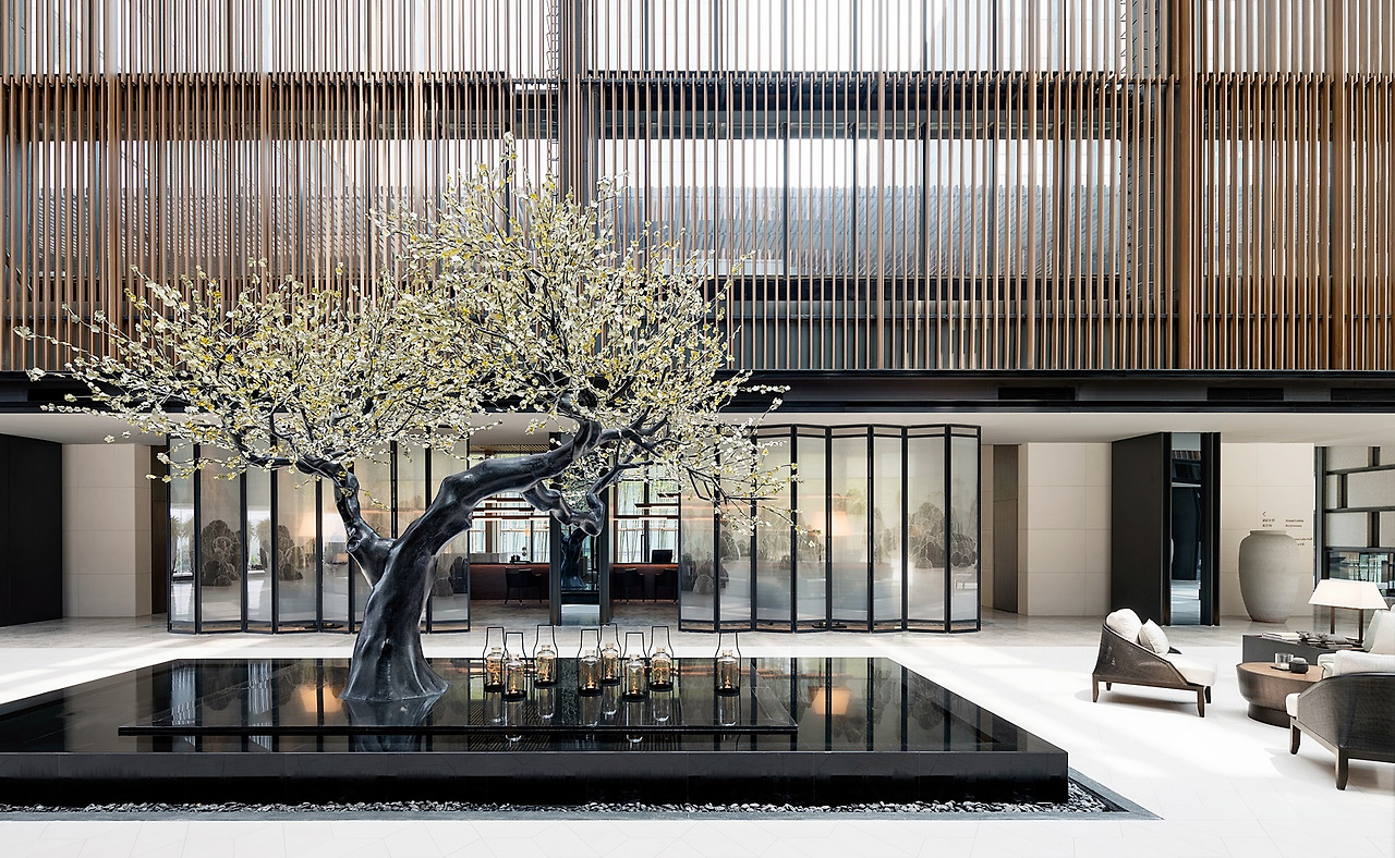 두 번째는 ‘빛’이다. 햇빛과 달빛이 모두 로비 문을 통해 들어오게끔 설계해 매일이 밝다. 화강암 소재의 바닥재와 잔잔히 조화를 이루고 있어 괜스레 나른해지곤 한다. 마지막은 나무다. 더 랄루 난징에 심어진 나무들은 원예전문가가 직접 관리한다. 호두나무는 차분하고 안정적인 느낌을, 대나무는 곧은 기상을 뜻한다. 로비 가운데에는 철재 소재로 만든 나무에 매화가 가득 만개해 있다. 매화는 난징의 꽃으로 생명력과 발전을 기원하는 뜻을 담고 있다. 황제들의 묘가 많은 터에 자리를 잡아 풍수와 중국 전통문화를 호텔 인테리어에 접목한 더 랄루 난징이야말로, 현대판 중국 왕궁이 아닐까.