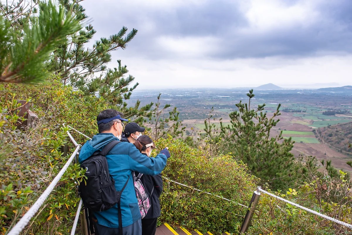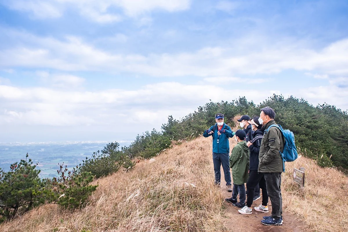 *코로나19 관련 안전 수칙 : 탐방객들은 오름 체험시 마스크를 착용하고 2m 간격을 유지해야 한다. 간격을 유지하면서도 개인 수신기를 통해 도슨트의 해설을 들을 수 있다.