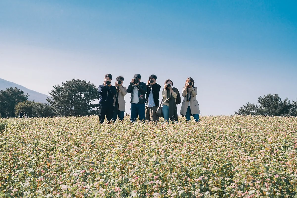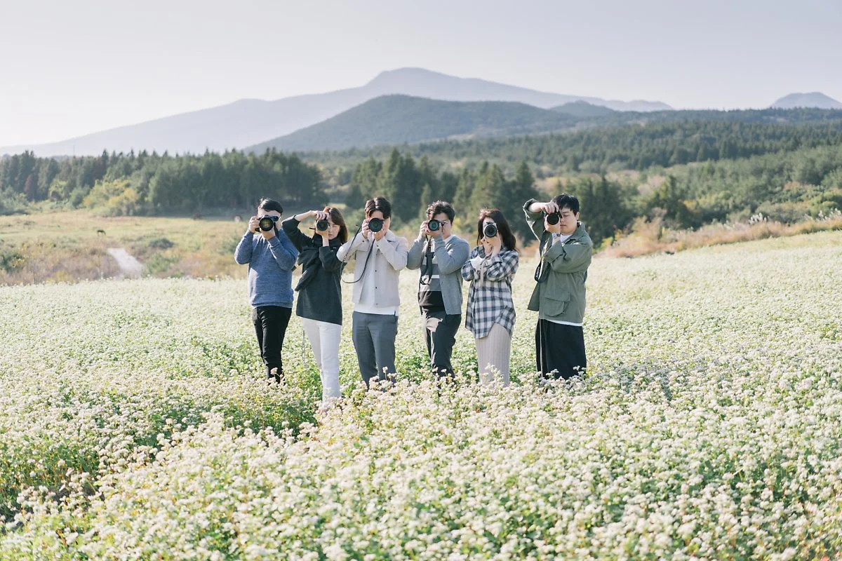 한 달에 한 번. 여행과 사진에 진심인 사람들이 모여 전국으로 출사여행을 떠난다. 여행지는 주로 제주도, 여행의 이유는 제각각이다. 사진을 잘 찍고 싶거나, 이미 잘 찍지만 오로지 함께하는 여행이 좋아서. ‘인생샷’에 대한 갈증과 기대도 이유 중 하나다. 투어를 이끄는 사람은 SNS에서 유명한 스타작가들이다. 이도저도 아니고, 그저 순수한 팬심 가득 장착하고 작가만을 보고 오는 이들도 있(많)다는 얘기다. 현재 브리피에서 활동하는 스타작가들은 약 10명 정도다. 작가 선정 기준에 인스타그램 팔로워 수가 한 축이긴 하지만, 그렇다고 유일한 척도는 아니다. 유명하진 않아도 출중한 실력과 독특한 콘셉트를 가진 작가들도 라인업에 올랐다. 가령 유독 자연광을 잘 쓴다거나 할머니, 할아버지들의 영정사진을 찍어주는 작가들도 브리피의 사랑을 받는 중이다.