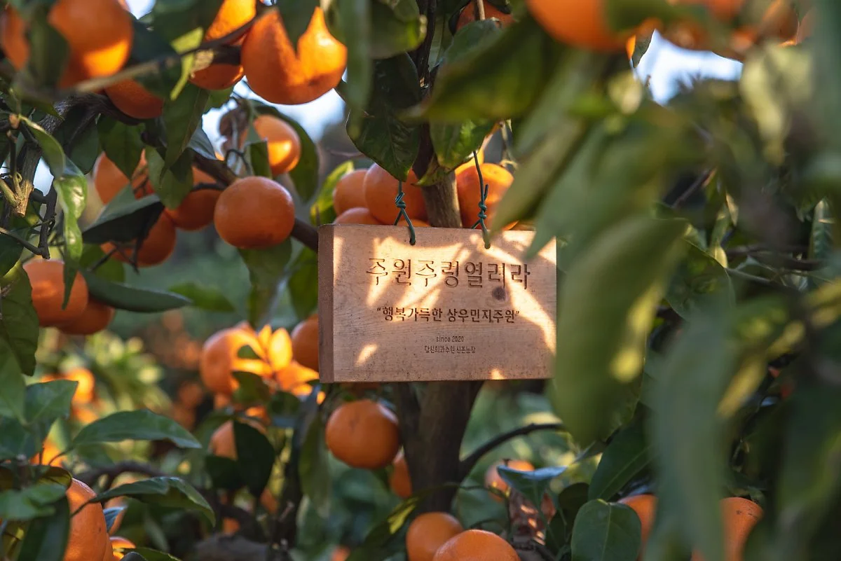 당신의 과수원에서 사계절은 꽤나 즐길거리가 다양하다. 하얀 귤꽃이 흐드러지게 피는 봄날에는 귤꽃 따기 체험이 가능하고, 뜨거운 햇살이 매력적인 여름에는 초록색 풋귤을 만날 수 있으며, 노랗게 귤이 익는 가을부터 겨울이면 직접 딴 귤을 맛볼 수 있다. 단순히 감귤과 관련된 체험만 있는 것도 아니다. 과수원 사이에 위치한 오두막에서 맛있는 차 한잔의 여유를 즐길 수 있으며, 감귤나무 사이에 위치한 ‘불멍존’에서는 생각을 잠시 내려놓고 타닥타닥 소리와 함께 ‘불멍’을 즐길 수도 있다. 나무 명패에 소원을 새겨 감귤나무에 걸어놓는 것 역시 놓칠 수 없는 특별함이다.