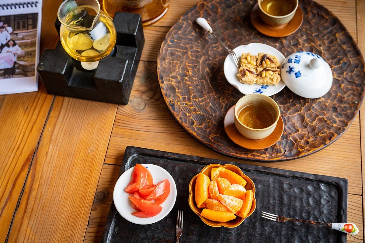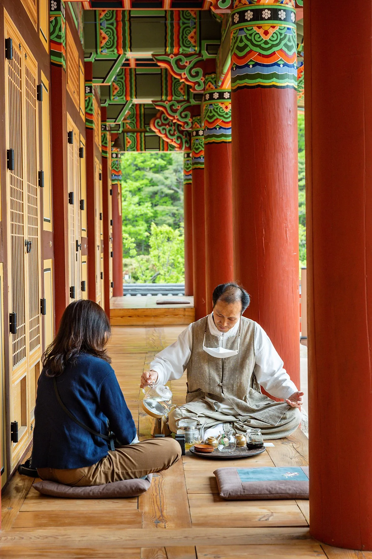 “차부터 한잔 하시죠.” 영덕문화관광재단 웰니스관광사업단 이태호 단장이 다과상을 권했다. 비가 안 와서 다행이라고 했더니 비가 와야 더 좋다며 아쉬워한다. 뭔가 편안해지는 기분. 차 한 모금을 입에 담으니 내내 듣지 못한 새소리가 들리기 시작한다.
