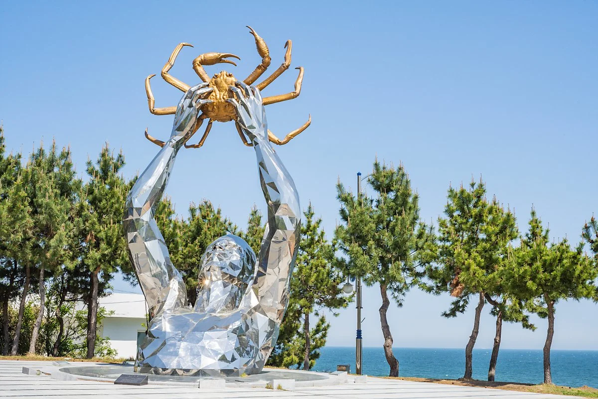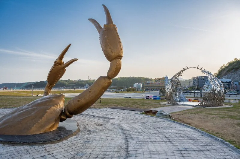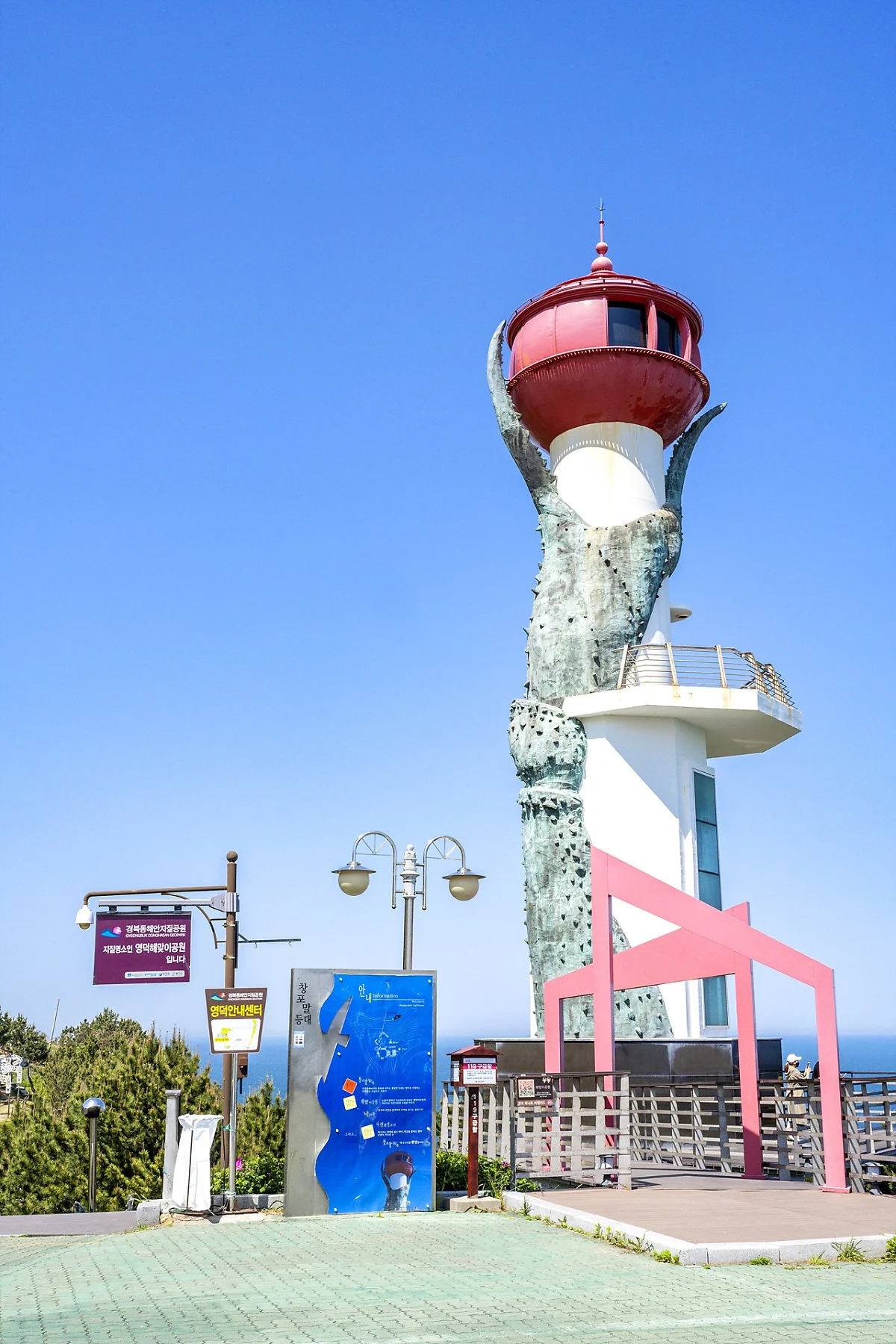 이제 식후경! 번잡함을 관통해 동광어시장 코너를 돌자마자 뻥 뚫린 영덕 해파랑공원이다. 강바람이 해풍으로 바뀌는 곳, 매년 대게 축제가 열리는 곳이자, 매일 해가 뜨는 곳이다. 가슴도 뻥 뚫리는 기분이다.