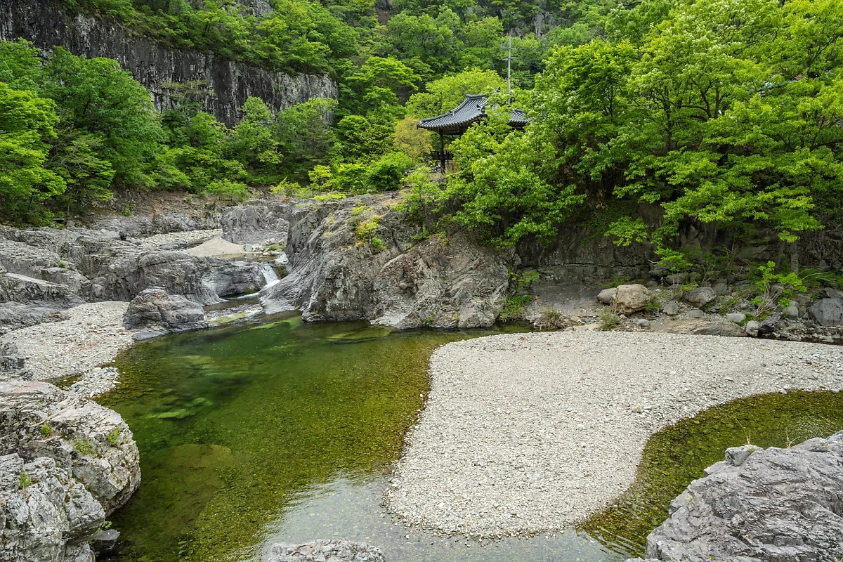 팔각산(632m)과 동대산(792m) 사이로 흘러 고인 청수가 39경 요술을 부린다. 보통은 정자에서 계곡을 내려다보고 말 일인데, 뭔가에 홀렸던가 보다. 발을 적시는 계곡 트레킹으로 침수정까지 도착하고 보니 내려다보는 계곡과는 전혀 다른 느낌이다. ‘어서 빨리 여름이 왔으면’ 싶었던 것도 계곡의 청량감에 홀린 탓이고.