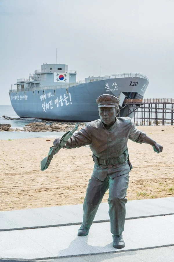 장사상륙작전 전승기념관 ‘문산호’는 학도병들의 희생을 기리고 있다