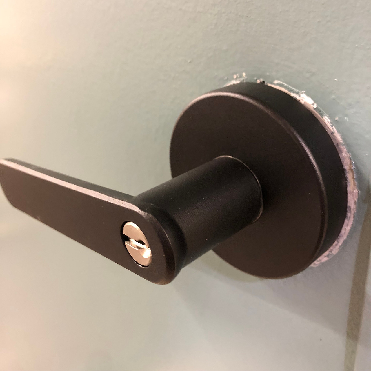 미리 페인트 칠하기 전에 이 생각을 했더라면 아예 문고리를 빼고 칠했을 텐데.