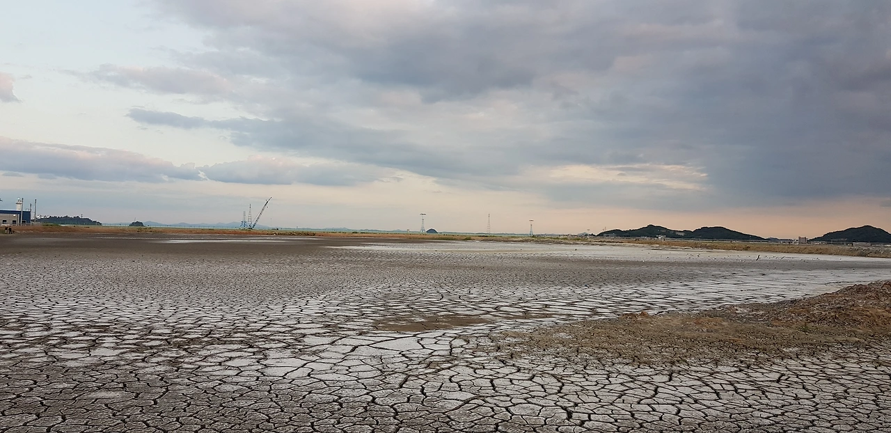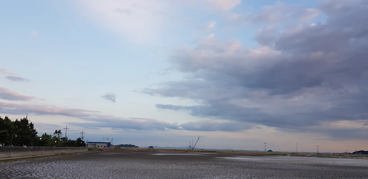 바다로 가는 길 한쪽은 물이 빠져 쩍쩍 갈라진 메마른 땅.