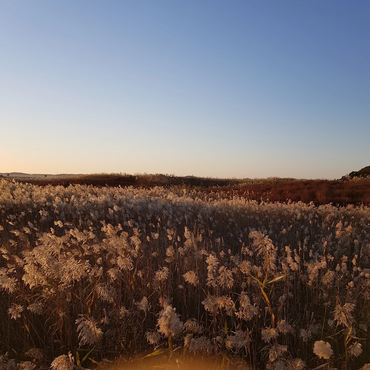석양빛에 붉게 물든 갈대의 모습이 아름답다.