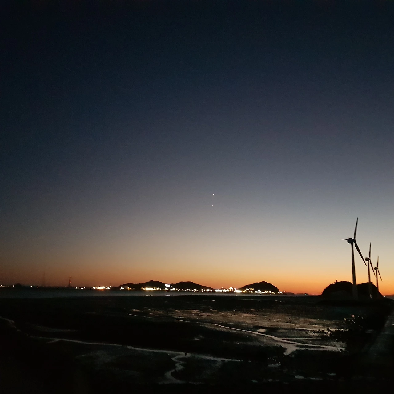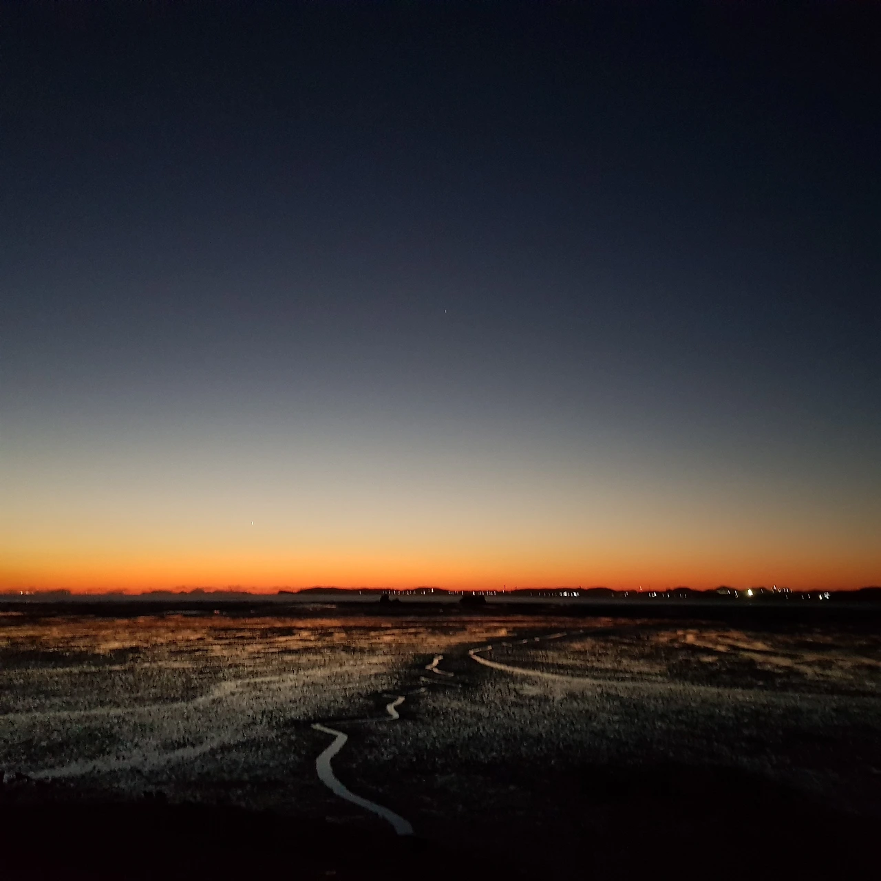 저 멀리 인가의 불빛이 보인다. 불빛은 어두울수록 밝게 반짝인다.