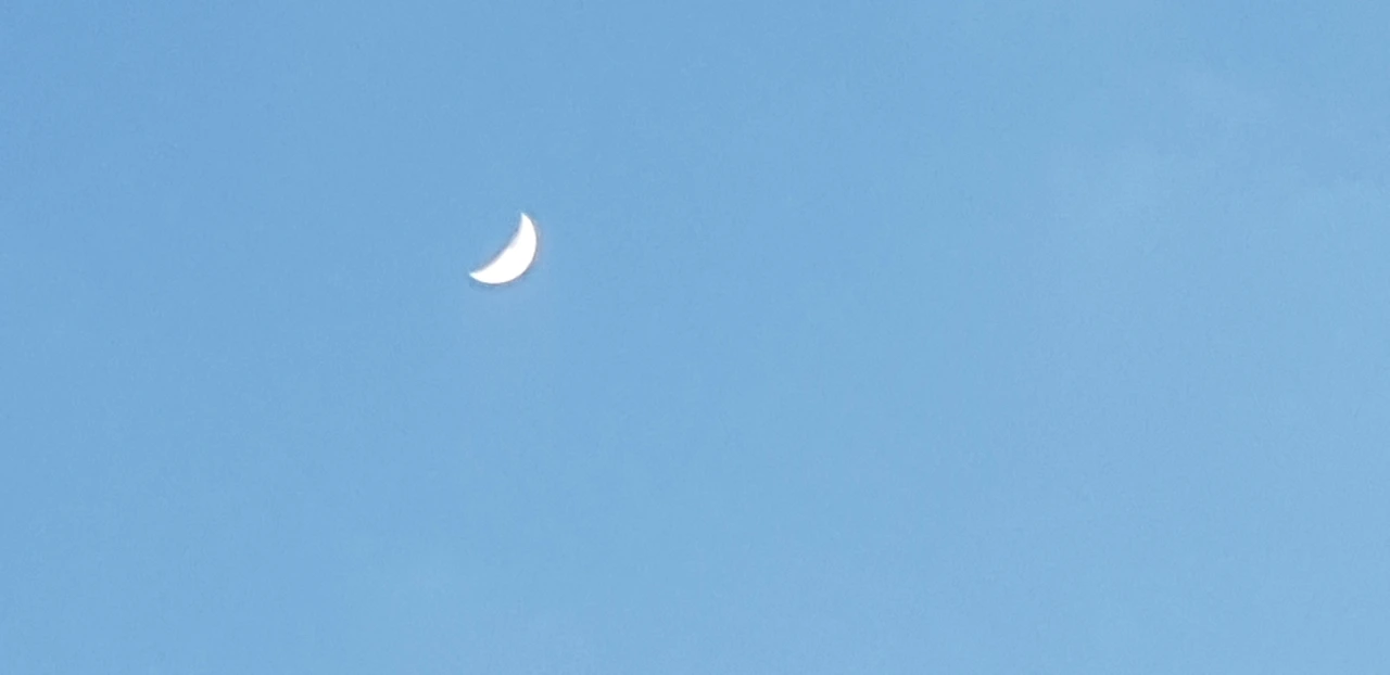 하늘색 하늘에 뜬 흰 달