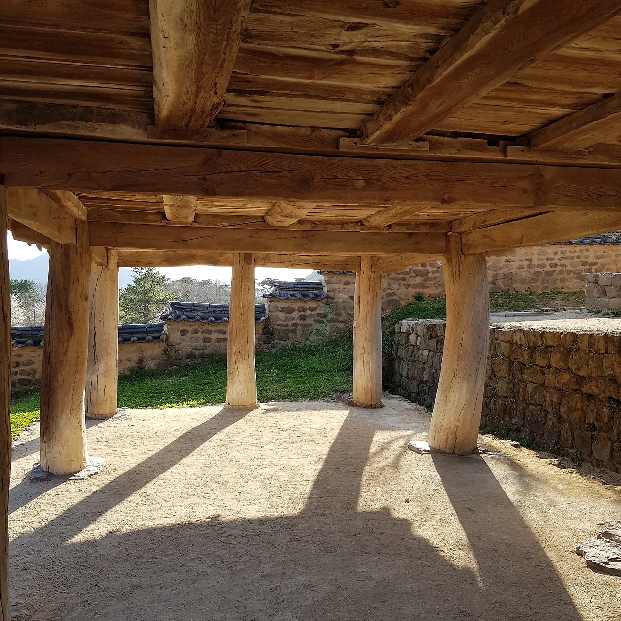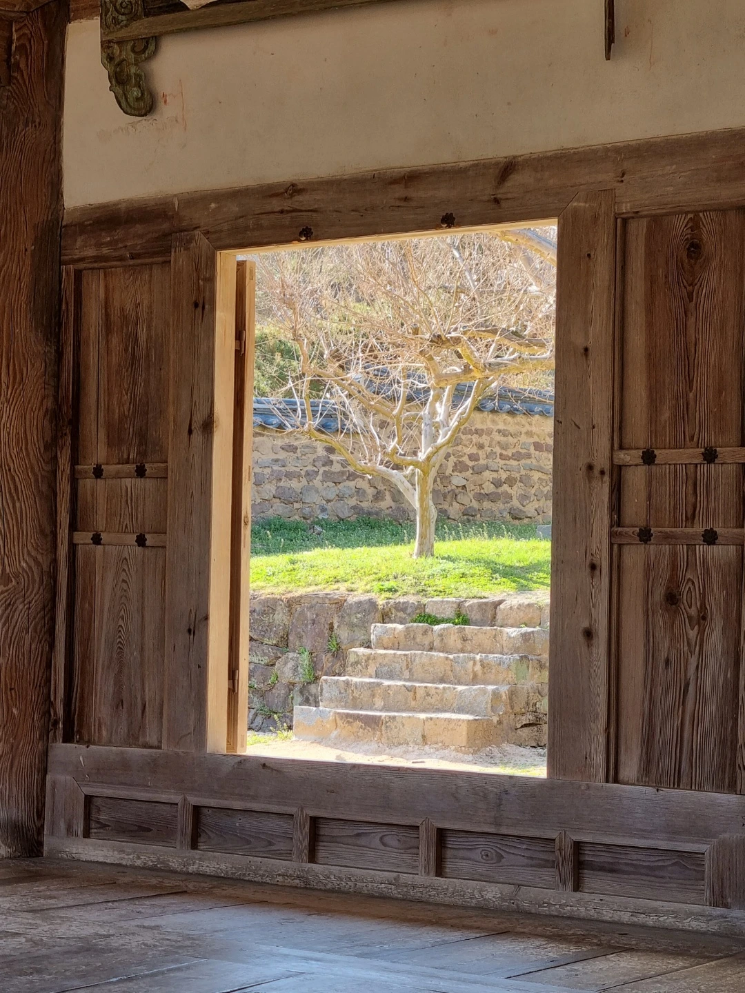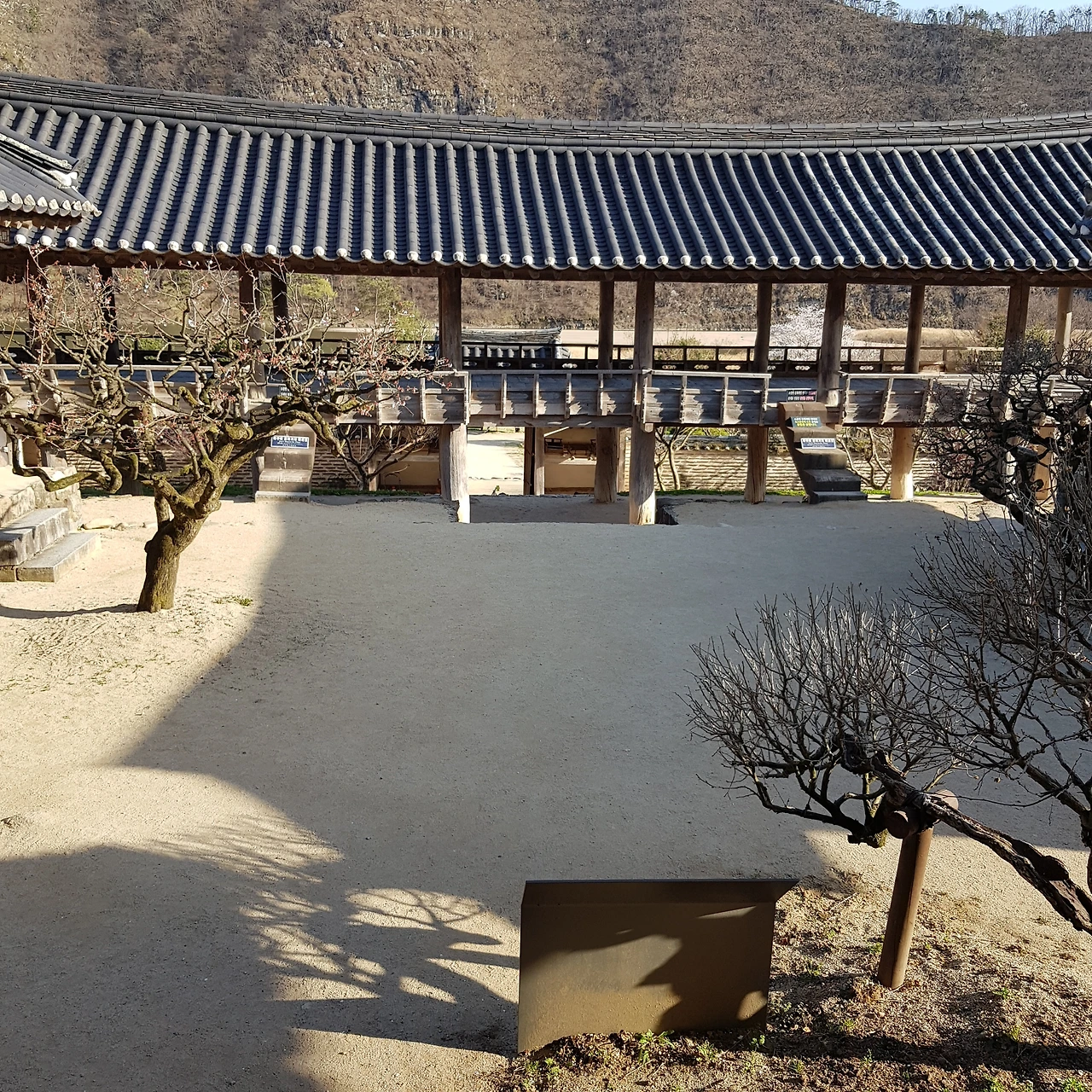 마루에 걸터 앉아 해그림자를 드리운 마당을 본다.