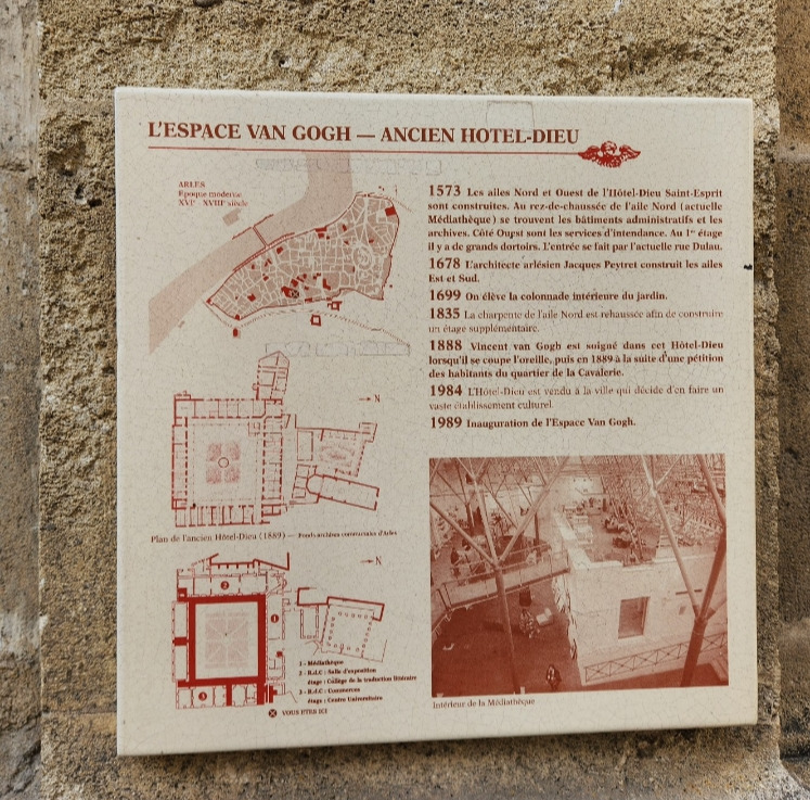 이곳은 1573년에 세워진 아를의 오래된 병원이다. 빈센트 반 고흐는 1888년 겨울부터 1889년 초까지 귀를 치료하기 위해서 이곳에서 입원했고, 당시 20대 인턴 의사였던 펠릭스 레이의 도움을 받았다. 이후 고흐는 이런저런 문제로 생 레미 드 프로방스의 정신병원으로 옮긴다.