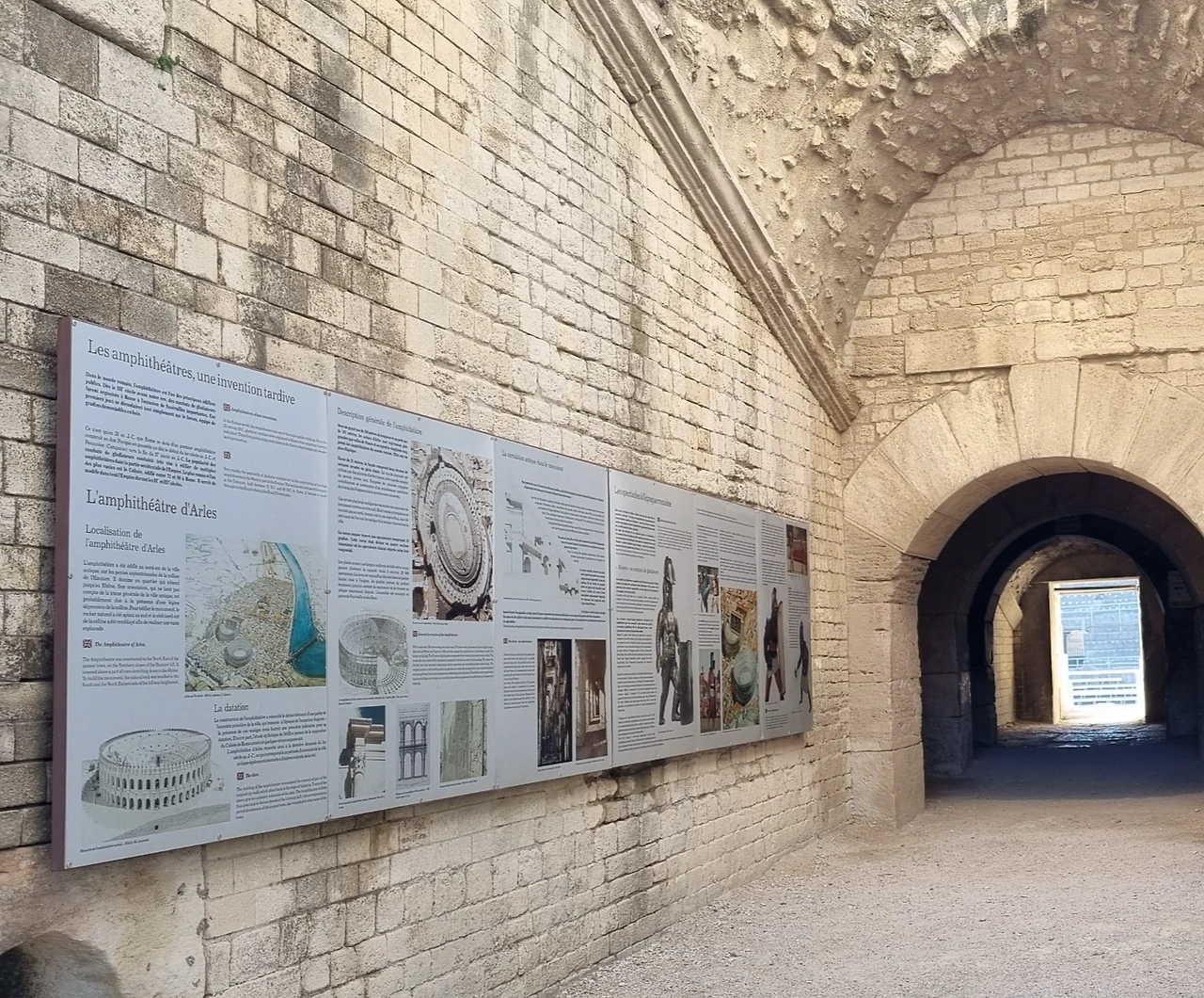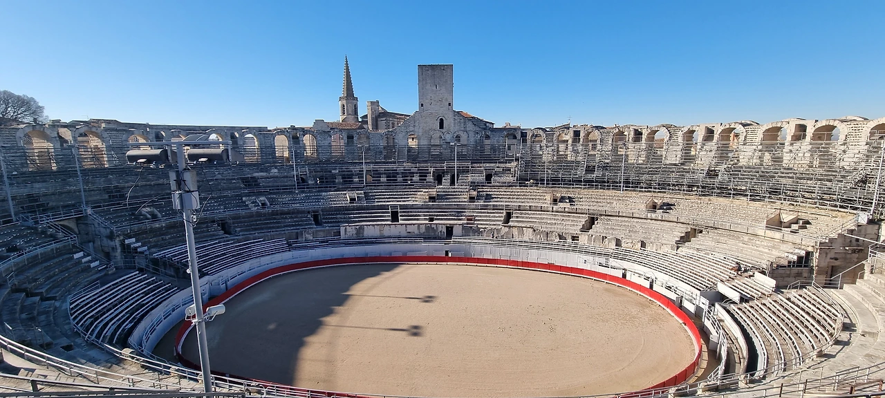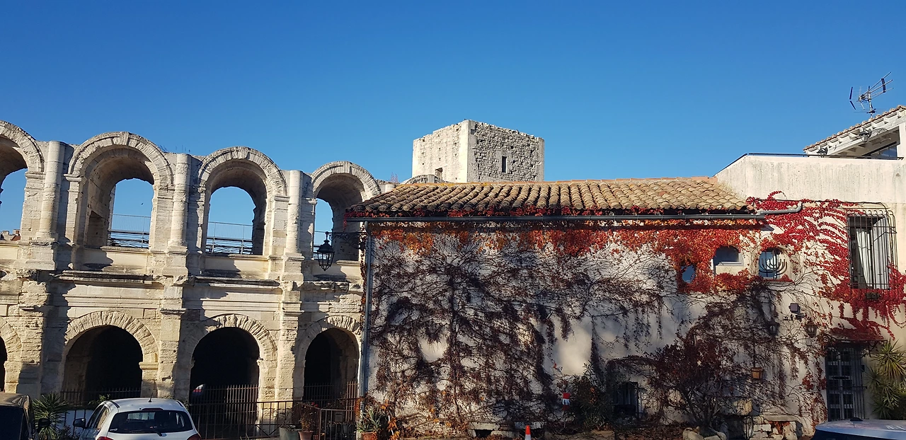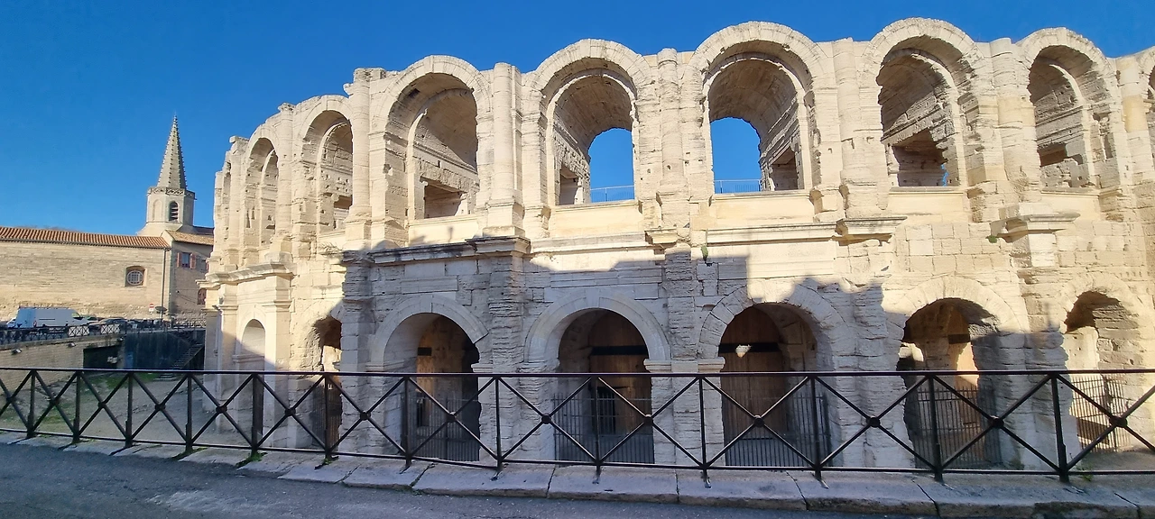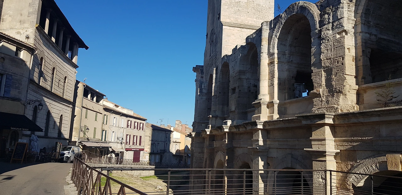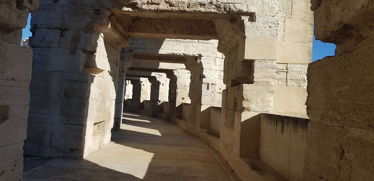 들어가는 입구를 찾기 위해 원형으로 한 바퀴 돌았다. 아를 원형경기장은 로마의 아우구스투스 황제 시절 도시의 벽을 허물고 지은 원형극장이다. 로마의 콜로세움에서 영향을 받은 건물로 2만 5천 명을 수용할 수 있다. 로마인들이 검투사들의 시합과 맹수들이 싸우는 것을 관람한 장소이다.
