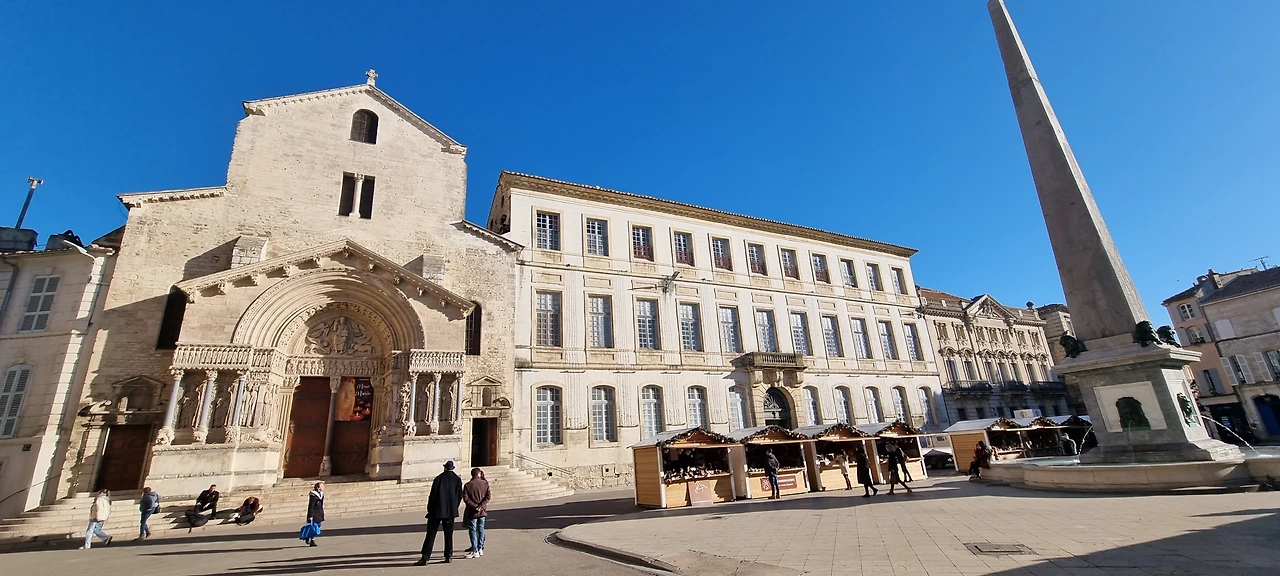 다시 공화국 광장(레퓌블리크 광장)으로 와서 성당에 들렸다. 오후가 되니 크리스마스 마켓이 문을 열고 광장은 훨씬 활기가 생겼다. 생 트로핌 성당은 프로방스 지방의 대표적인 로마네스크 종교 건축물로, 입구와 회랑 곳곳을 장식하고 있는 12~14세기의 섬세한 조각들이 유명하다.